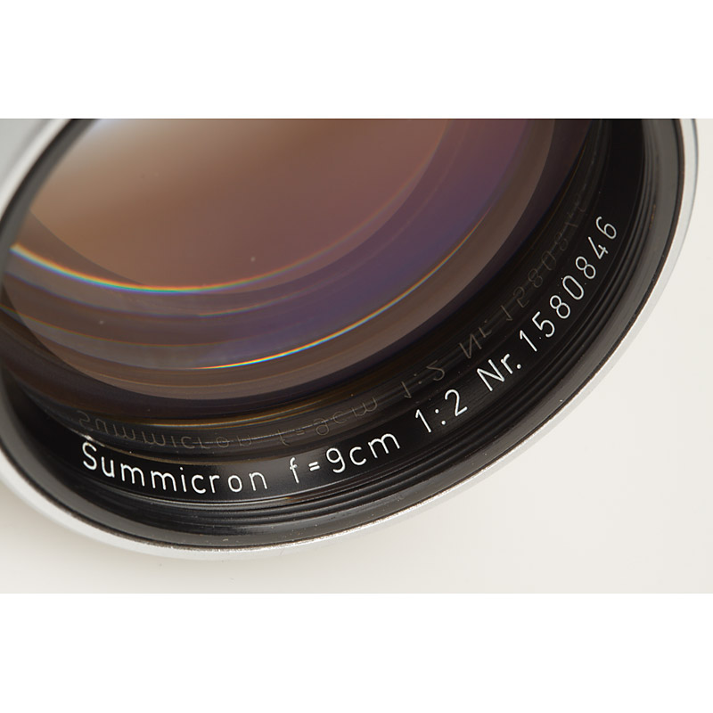 very rare Summicron in original screw-mount, Ernst Leitz Canada, with removable lens-head, in very good condition, hood engraved 'Summicron f=9cm 1:2 Canada' only