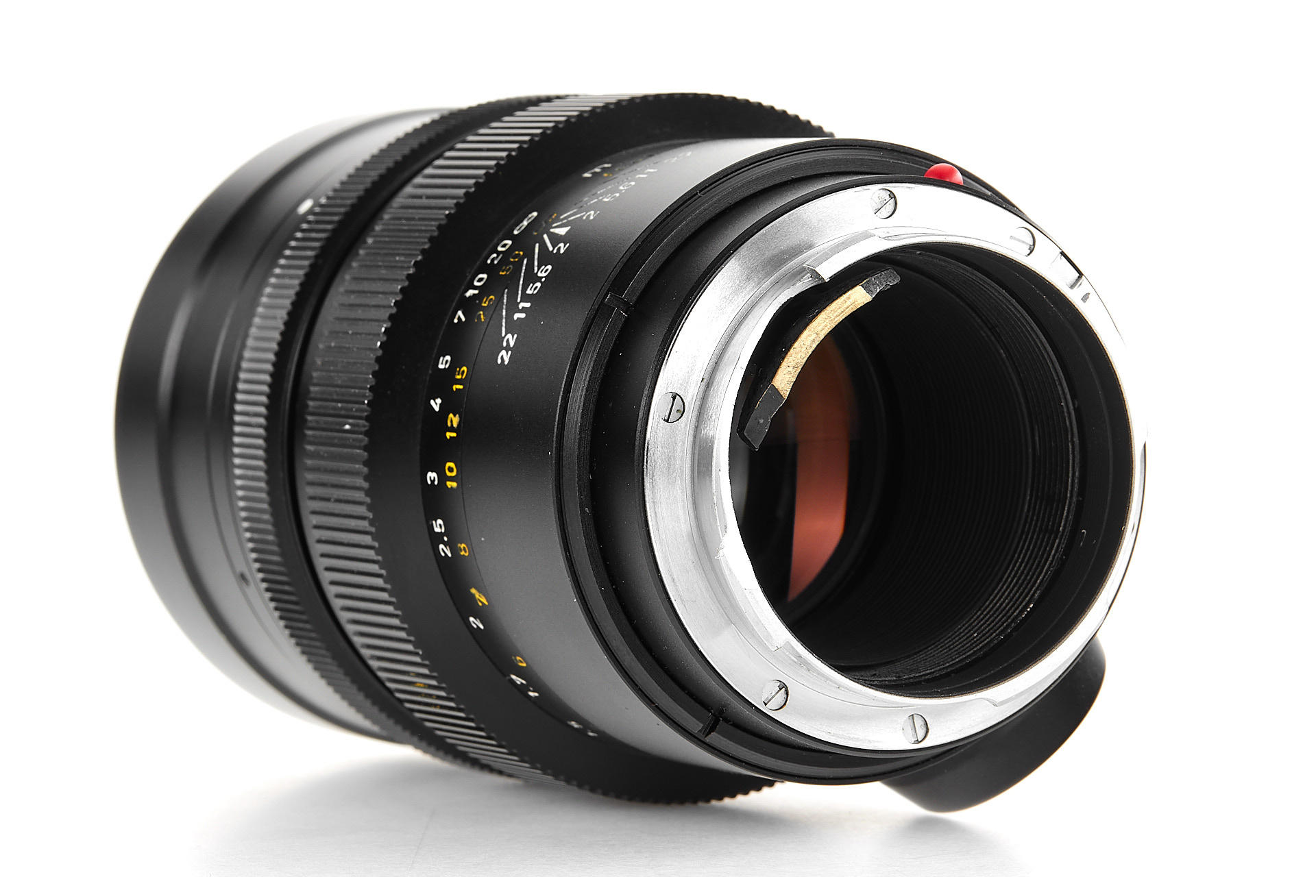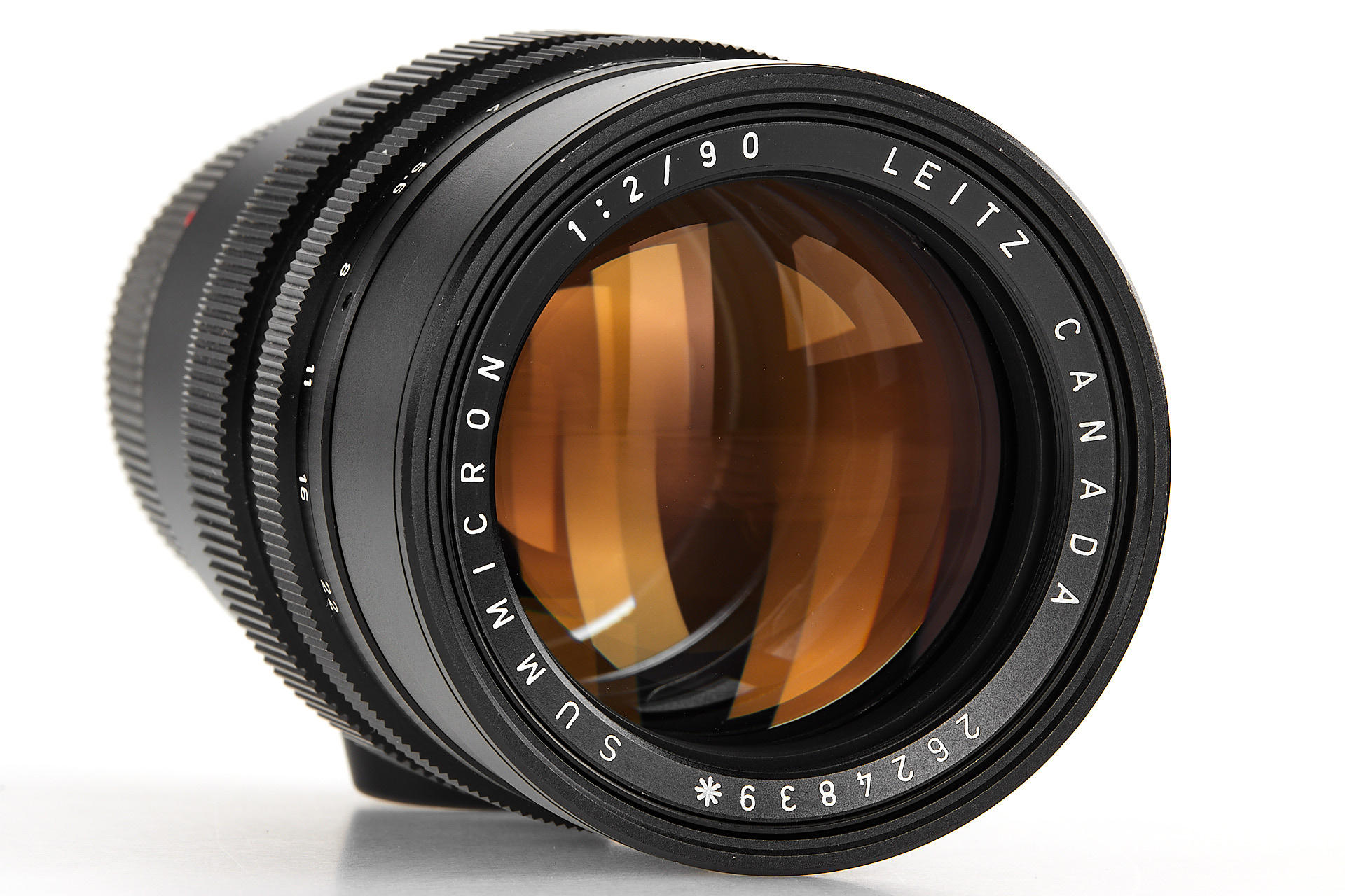 Interesting Summicron 2/90mm made in Canada with serial number ending by a *, supposedly meaning a duplicate item (the original one having been lost, stolen or destroyed in transit between the factory and its destination), in very good condition, clean and clear lenses, with both caps
