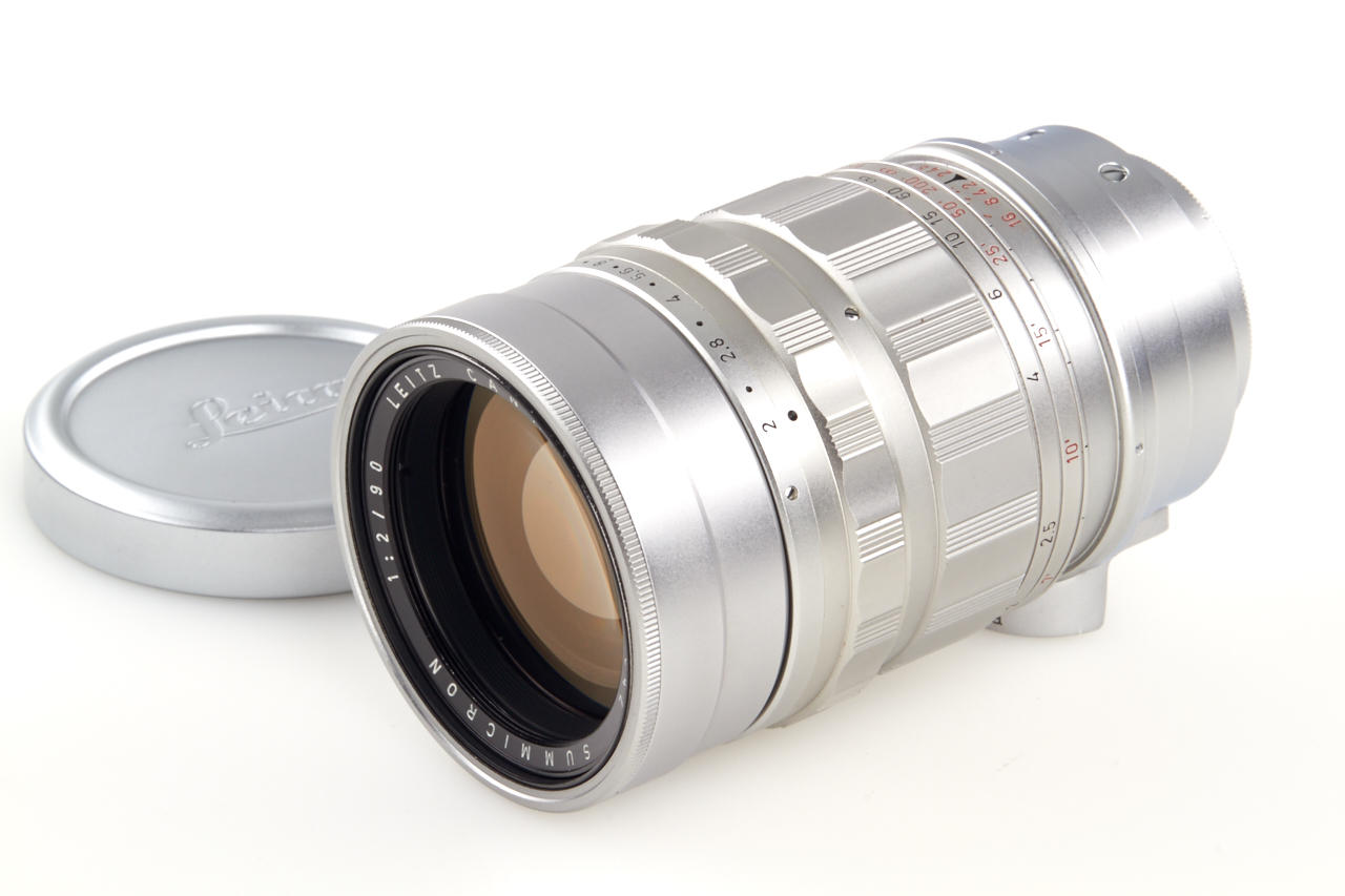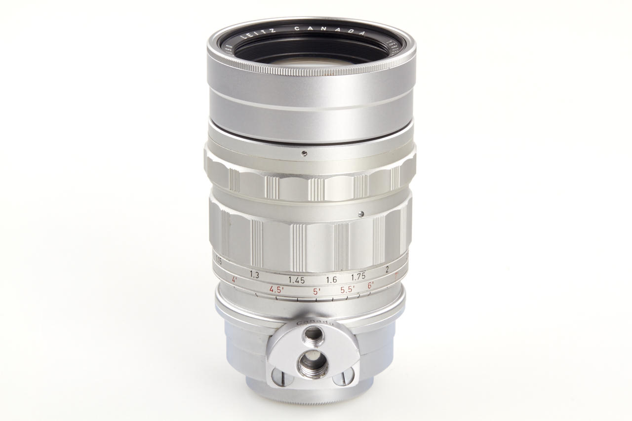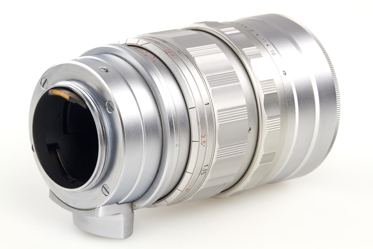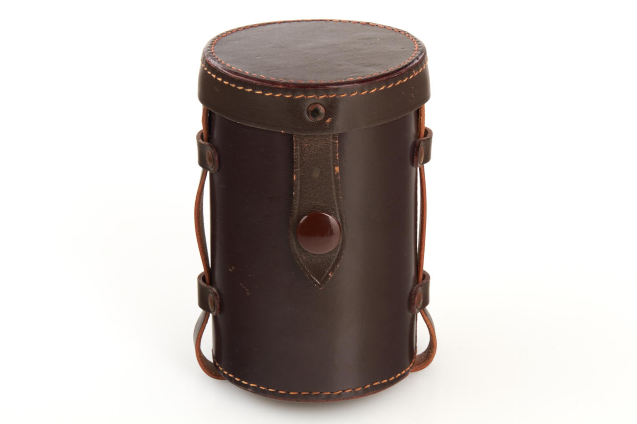 second version with removable lens head and built-in hood, in beautiful condition, clean optics, with leather case, front and rear cap