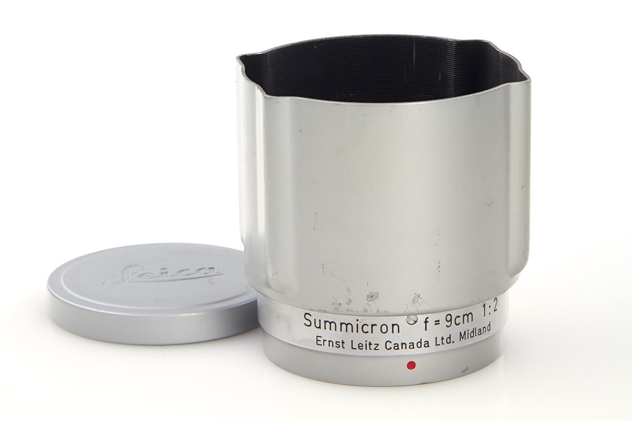 very early M-mount Summicron in very fine condition, clean lenses, with HMOOD hood, both caps and original maker's box with matching serial number (SOOZI-M No.1580082 Feet)