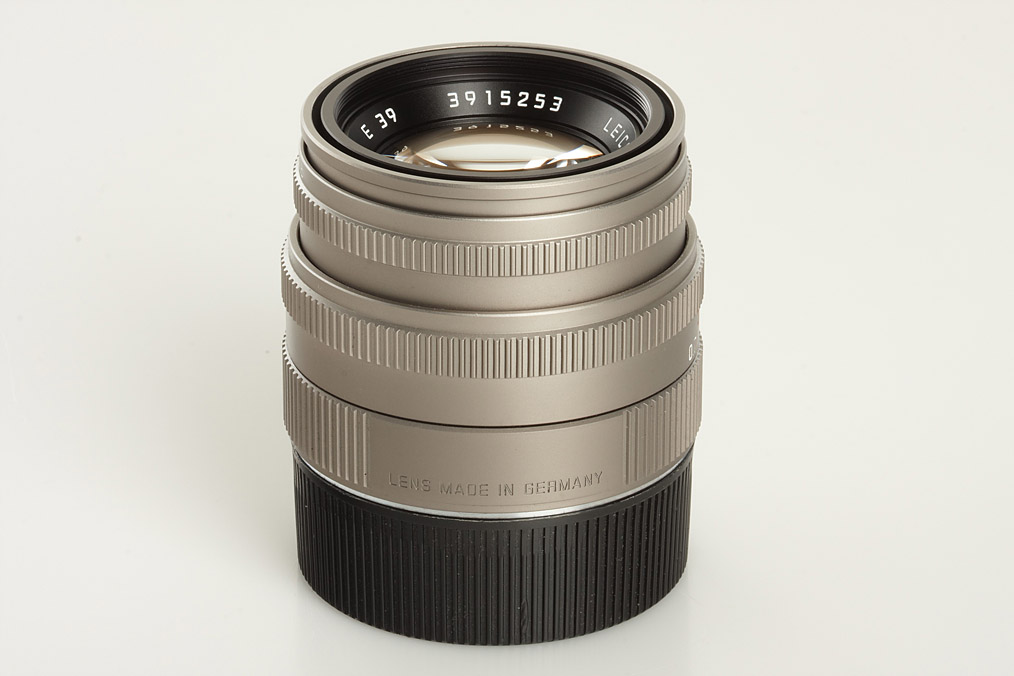 very rare lens in titanium finish (total production 500 lenses only), in mint condition with caps, case, all papers, guarantee card, maker's box with matching number