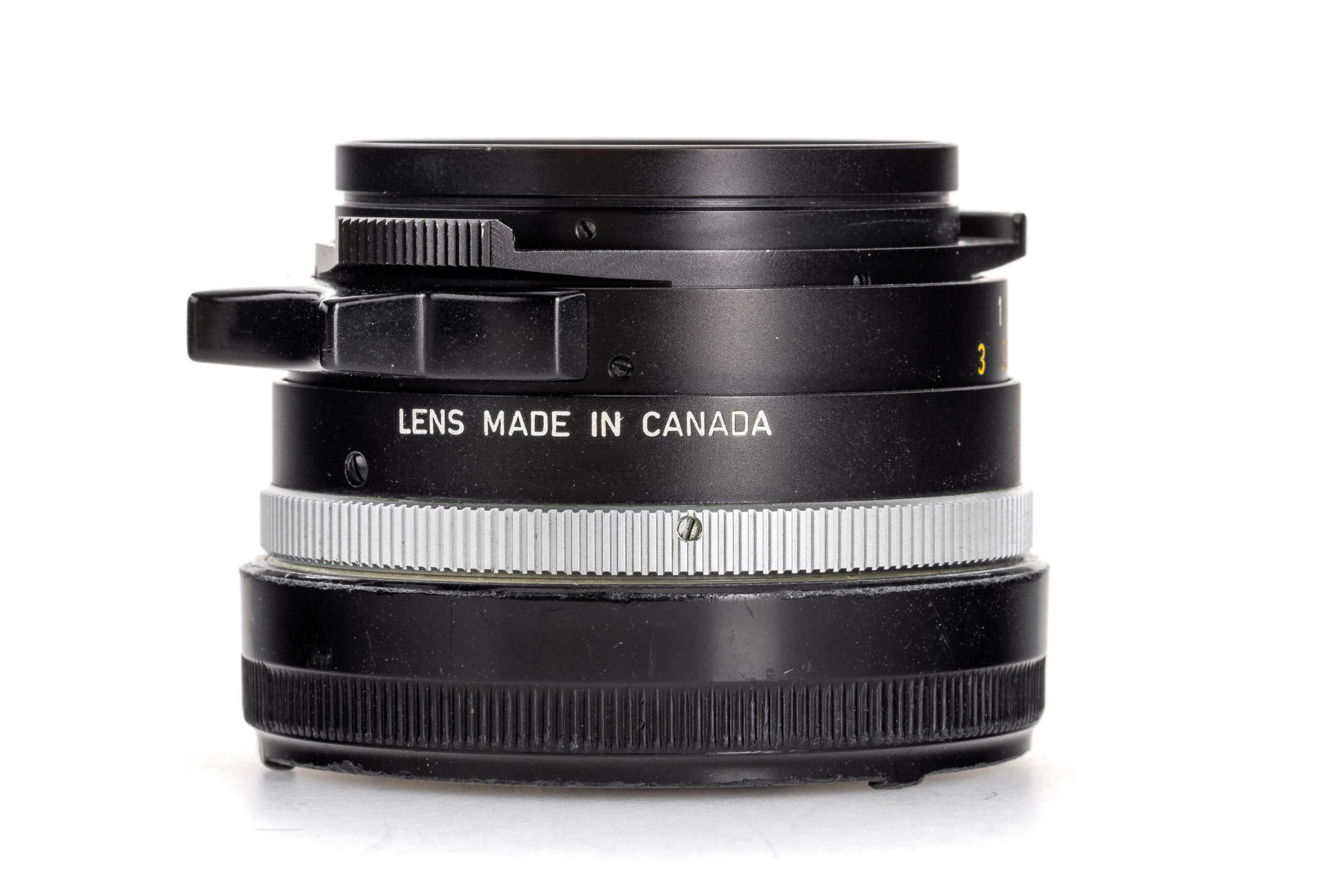 lens made in Canada in mint condition, clean and clear lenses, with hood 12504 and rear cap