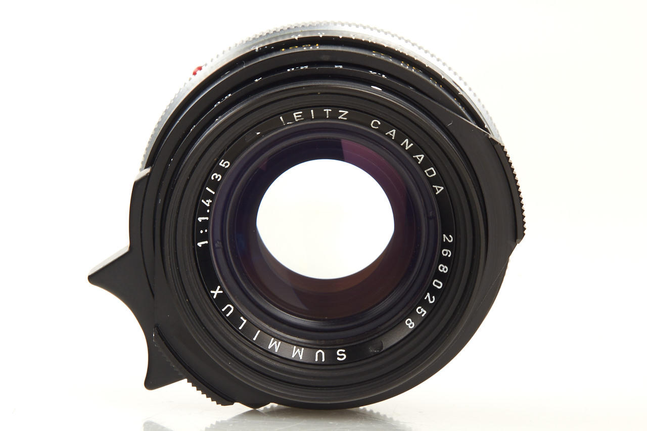 black Summilux in mint condition with clean lenses, cap, metal hood 12504