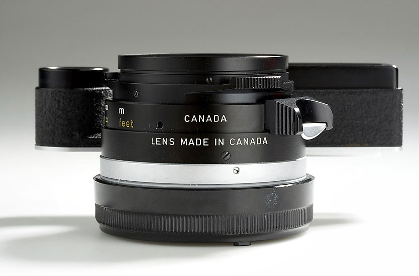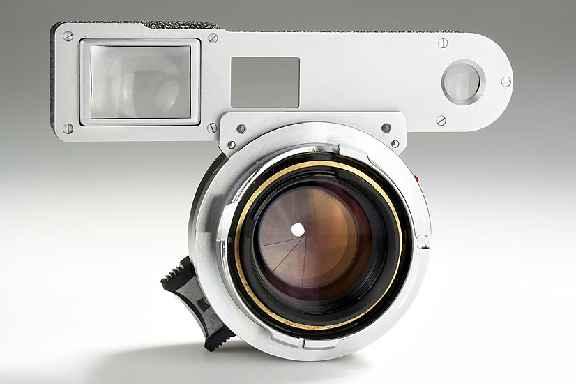 rare, Summilux for M3 with black painted spectacles and focus-stopper with chrome release, like new in original maker's box with hood 12504, cap and warranty card