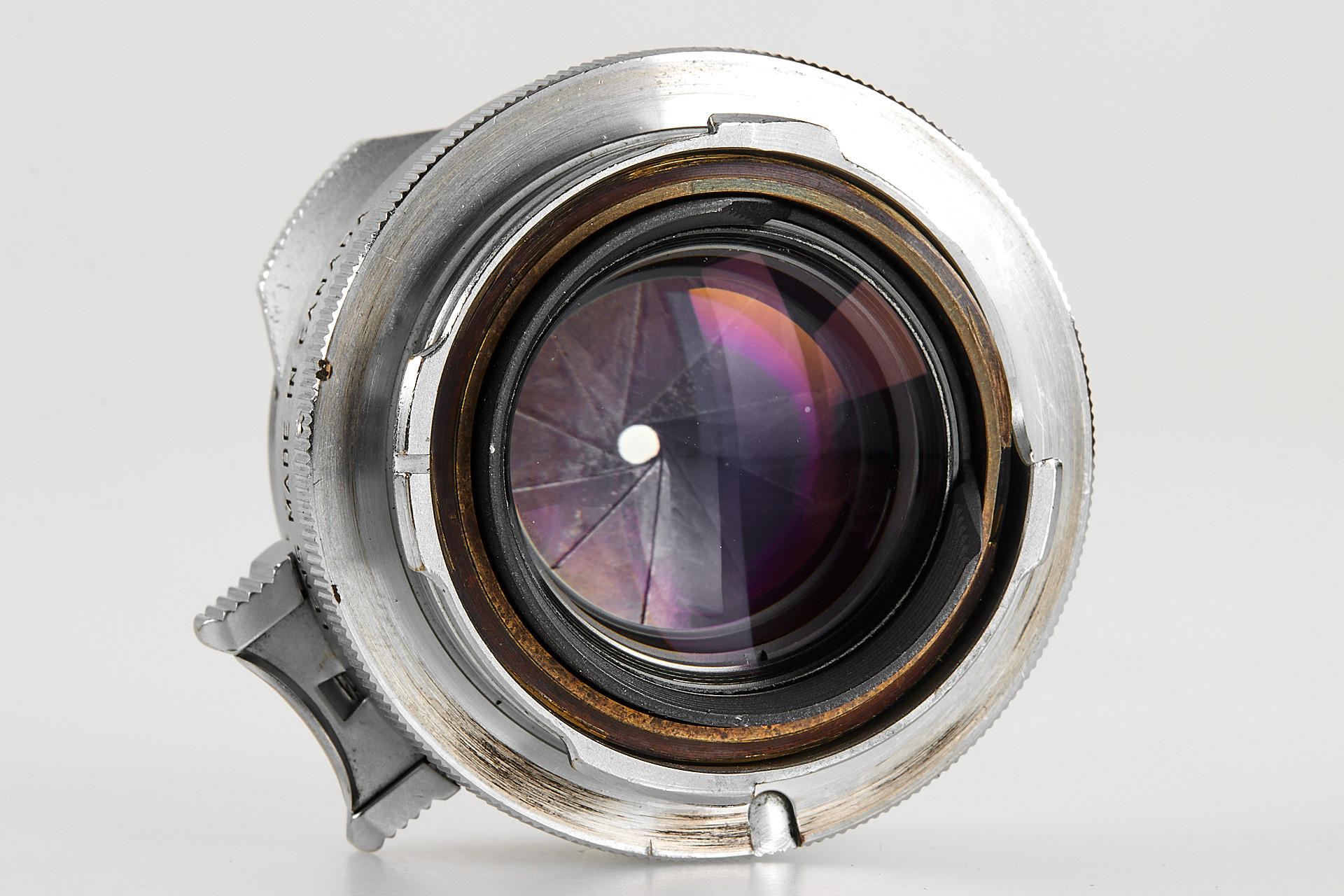 sought-after Steel Rim Summilux in very good cosmetic condition, with very good optics (only two hairline marks on the front element and small flaw in the coating in the rear element), incl. plastic keeper