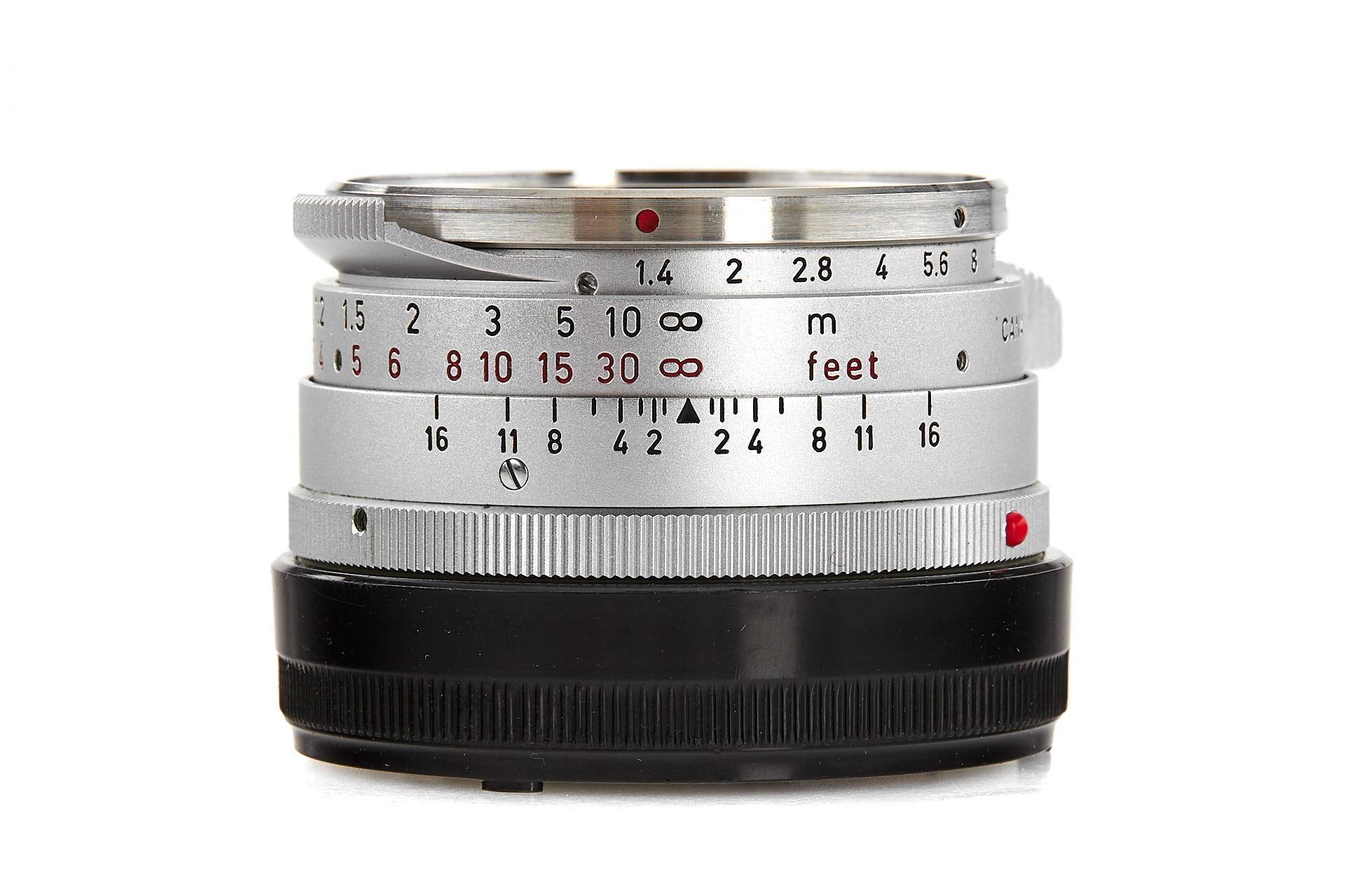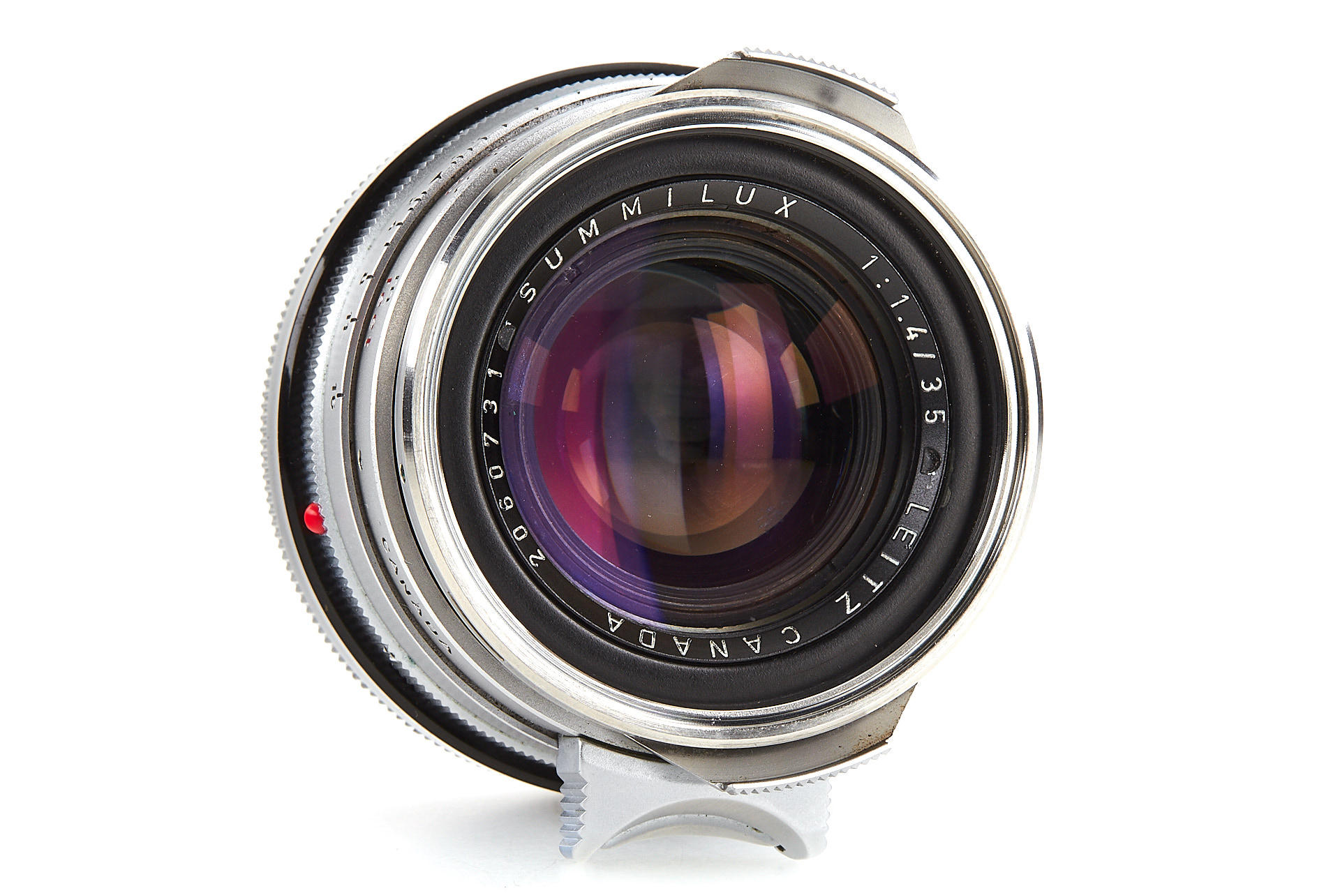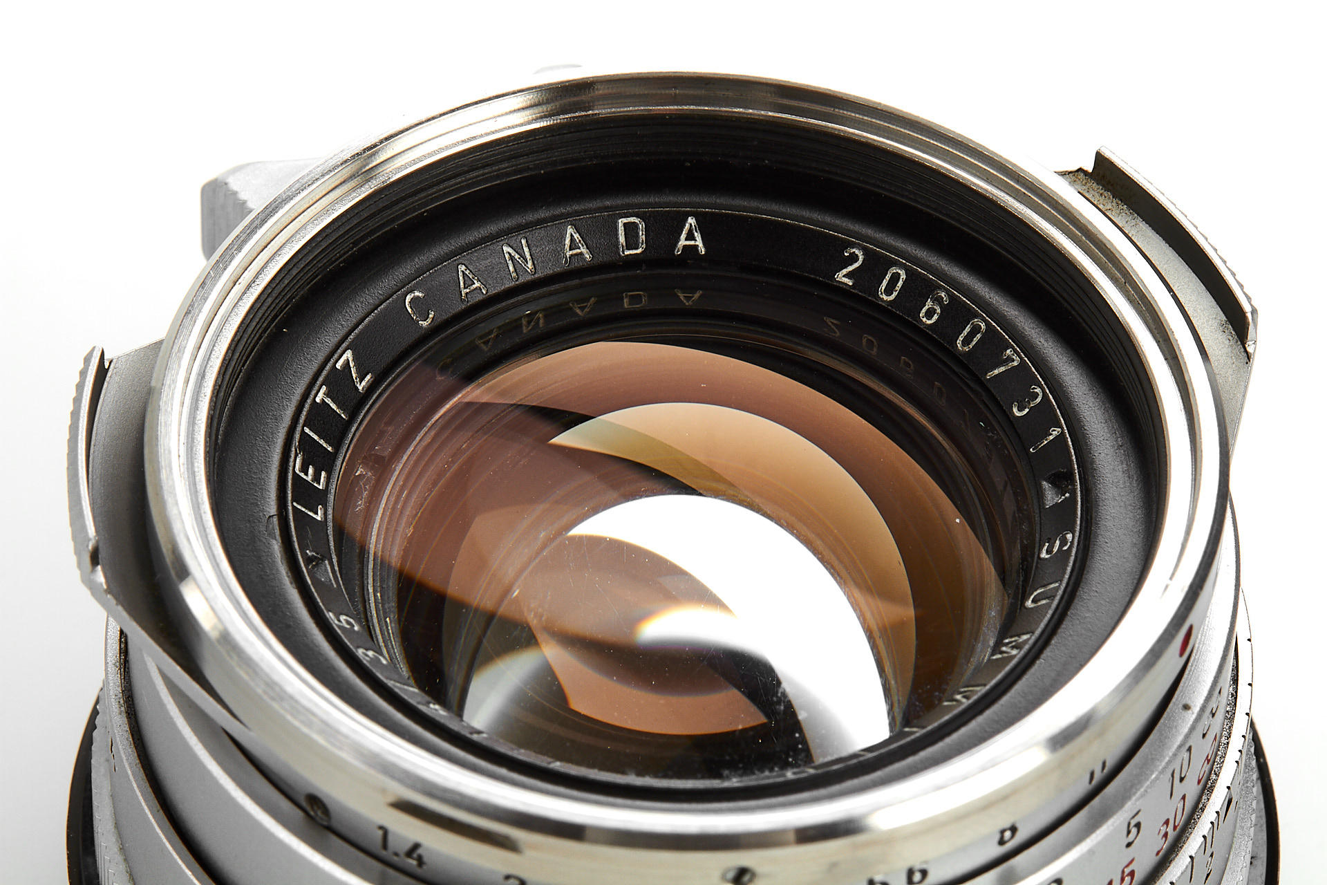 sought-after rare chrome Summilux for M2 in near mint cosmetic condition, very good, clean optics, with OLLUX hood and rear cap