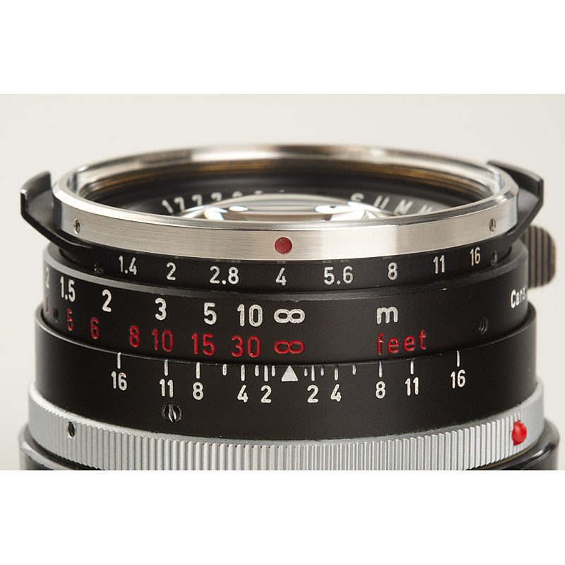 sought-after black Summilux for M2 with chrome front ring in near mint condition only the focusing handle and infinity lock button (black painted) with some wear (clean lenses, cap)
