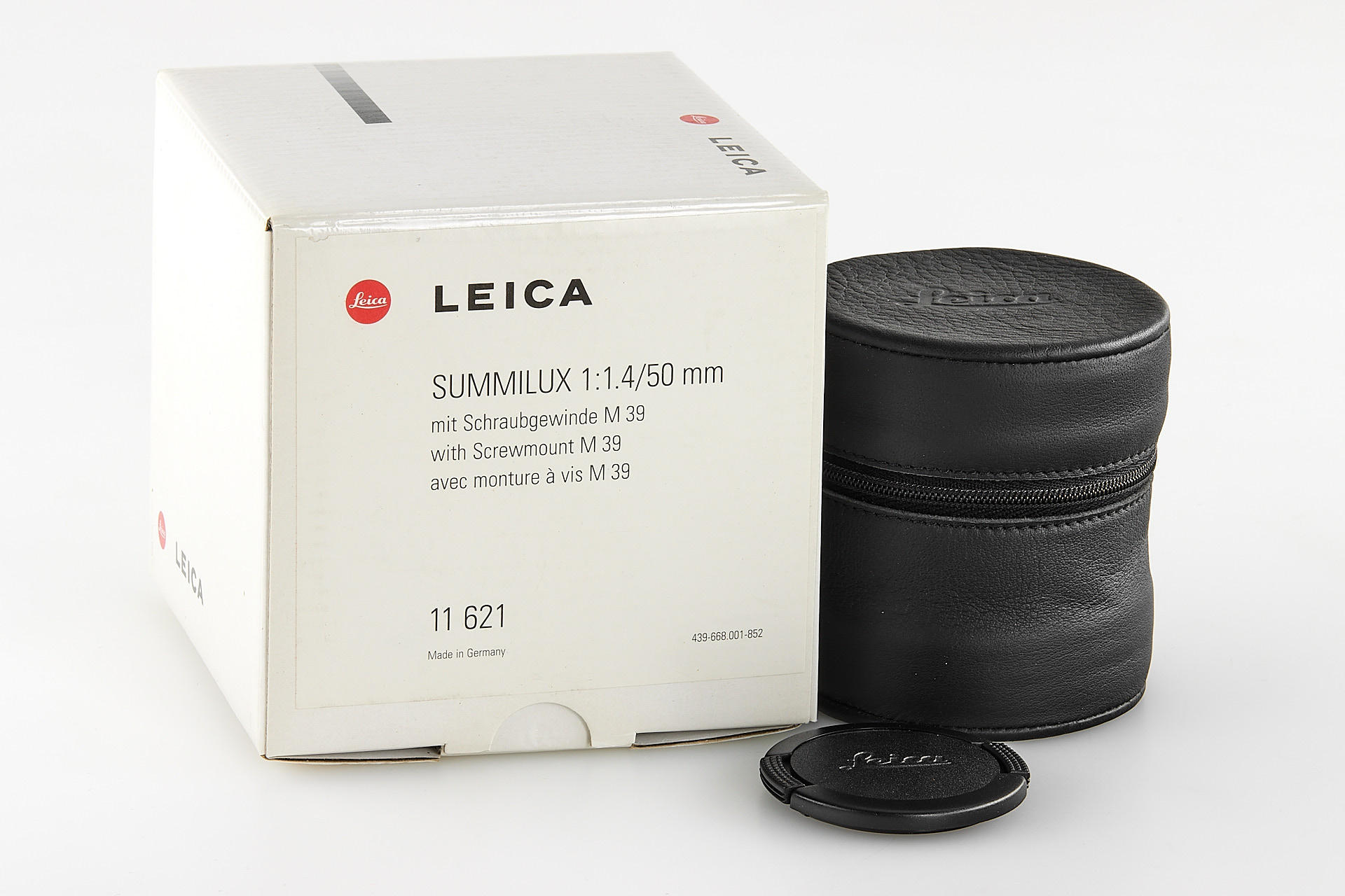 Rare screw mount Summilux chrome in mint condition, only 900 of these lenses have been made for M39 in 1999 and 2000, with both caps, leather case and maker's box