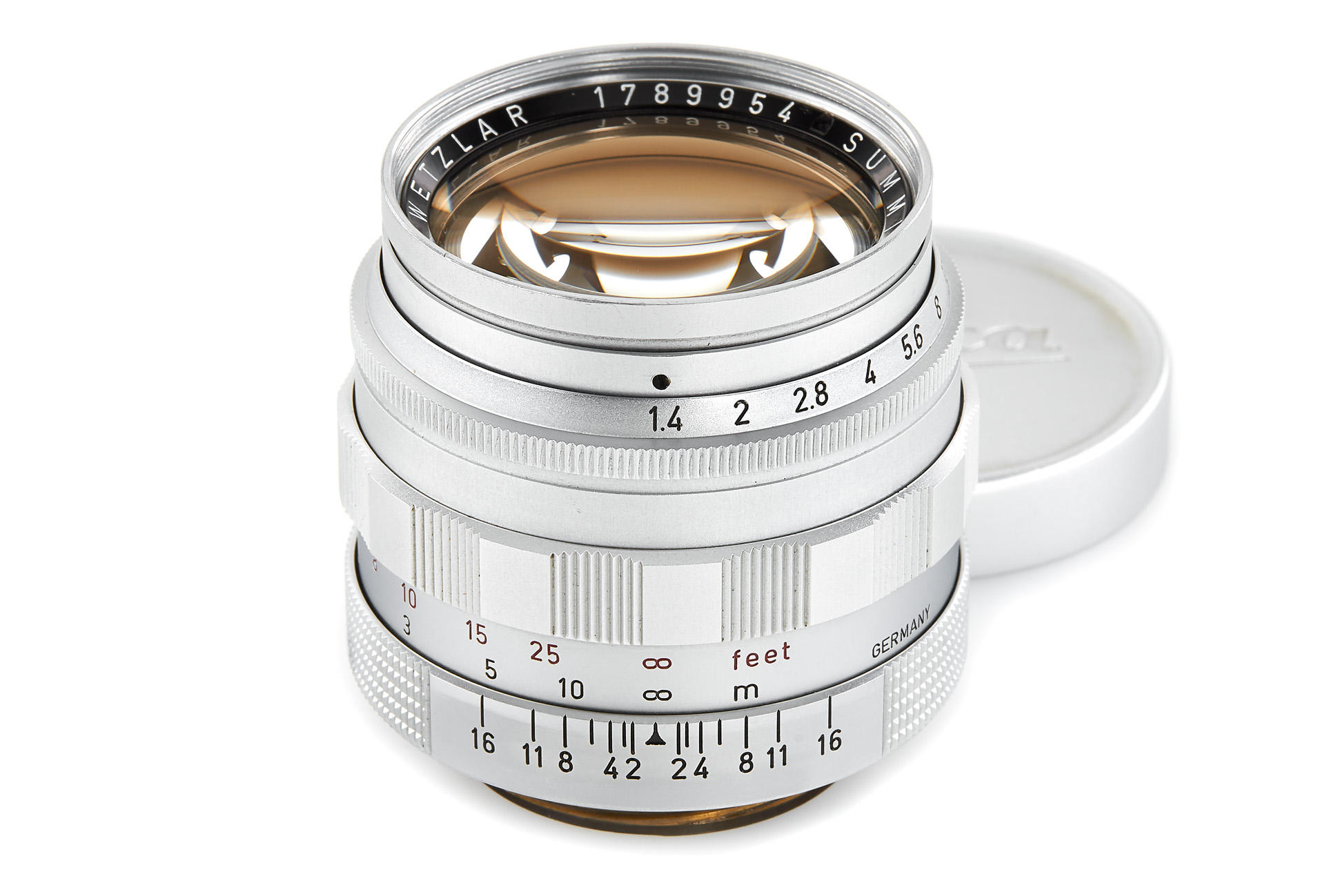 rare Summilux in original Leica screw mount, in beautiful, almost mint condition with clean optics, incl. front cap and plastic keeper