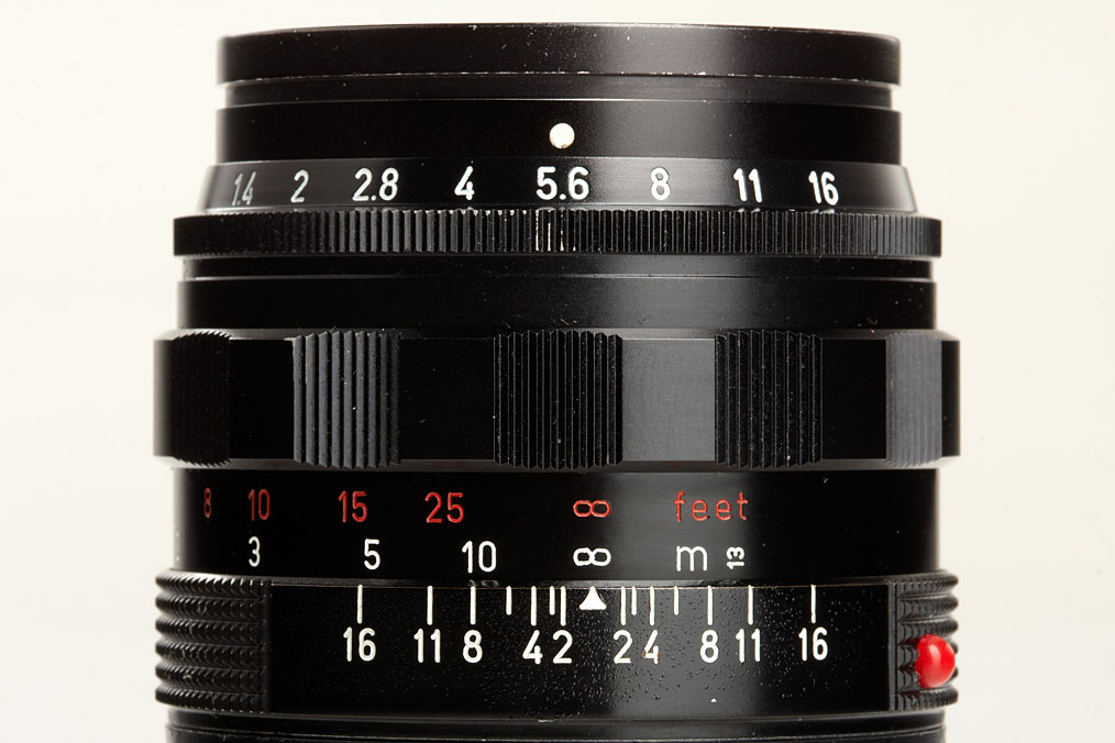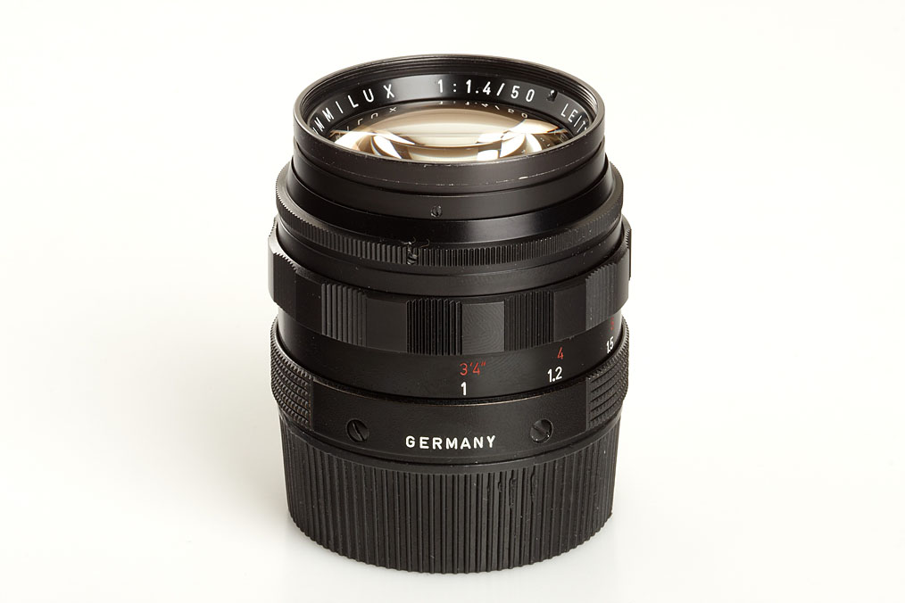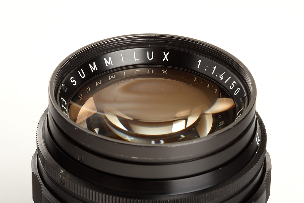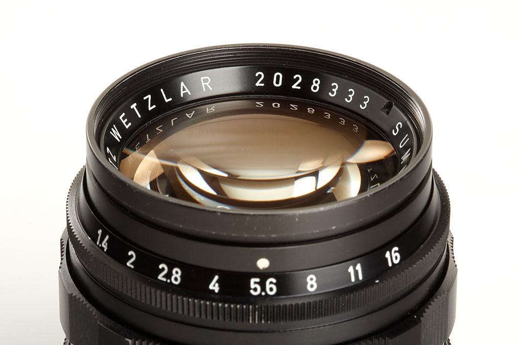 very rare 100% original black painted/anodized Summilux with hood 12586, caps, near mint with perfect lenses