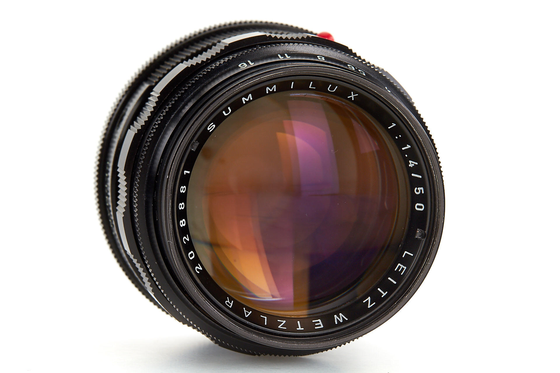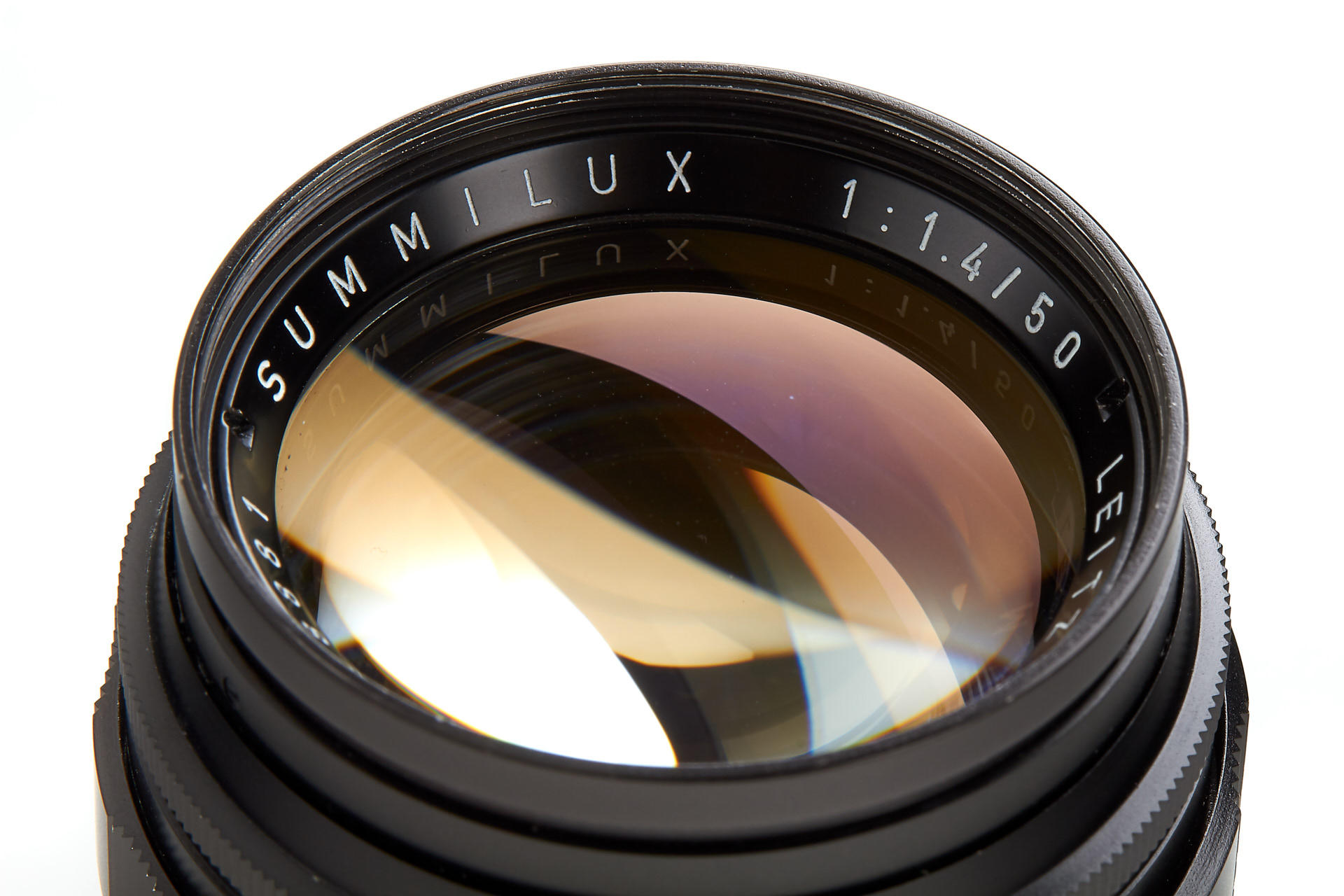 rare black paint Summilux in beautiful original condition, never repainted or restored, partially black painted and black anodized, very good optics, with both caps and 12521G hood