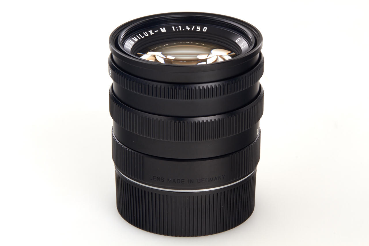 pre-aspherical lens with built-in hood, like new and complete with caps, leather case, all papers, maker's box