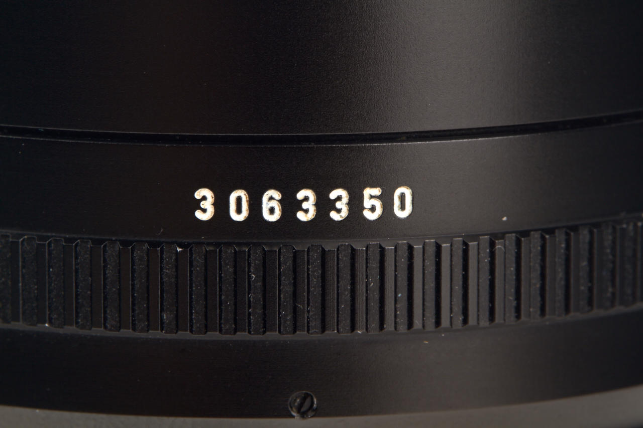 extremely early lens from the first batch (production started with number 3063301) with detachable hood 12539 in near mint condition, clean optics, both caps
