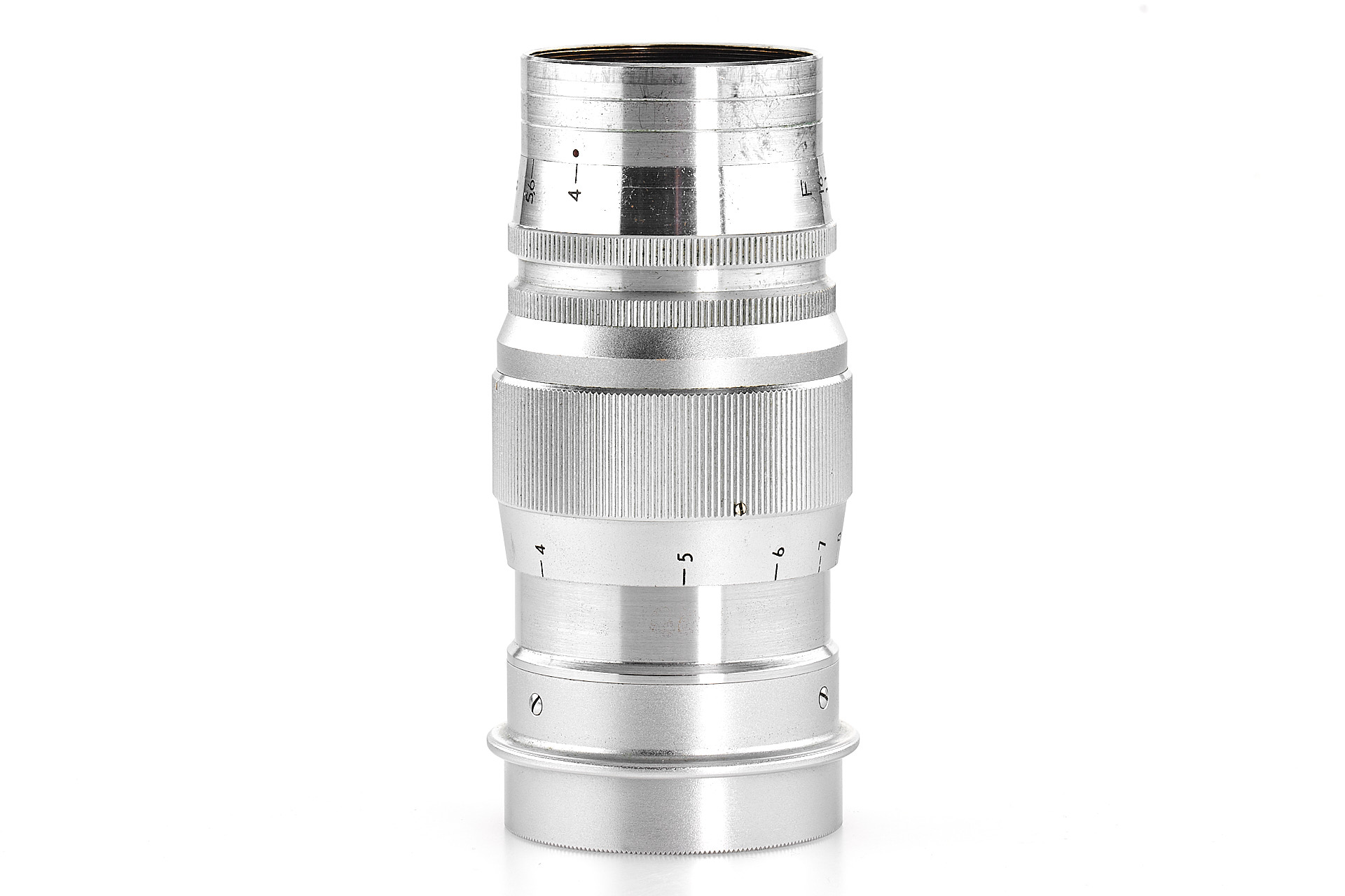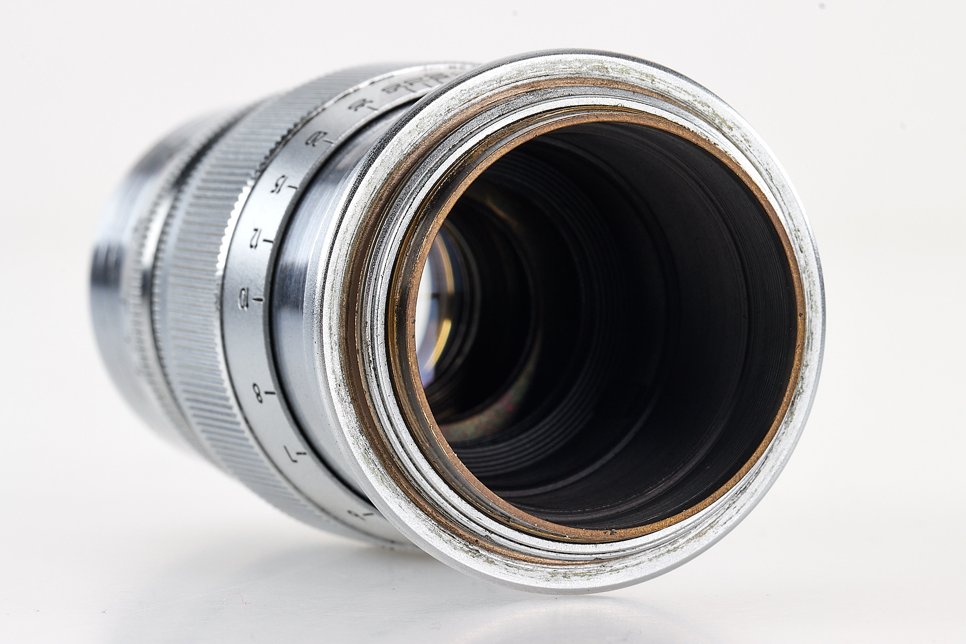 Rare Japanese RF coupled chrome tele-lens for Leica M39, in very good condition, with yellow filter and rear cap.
