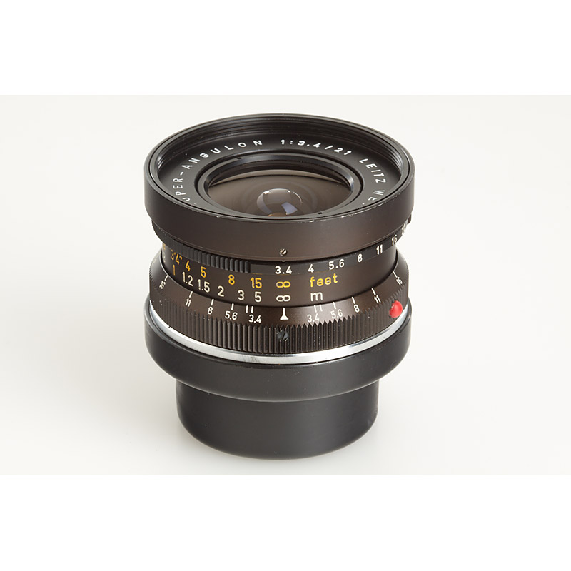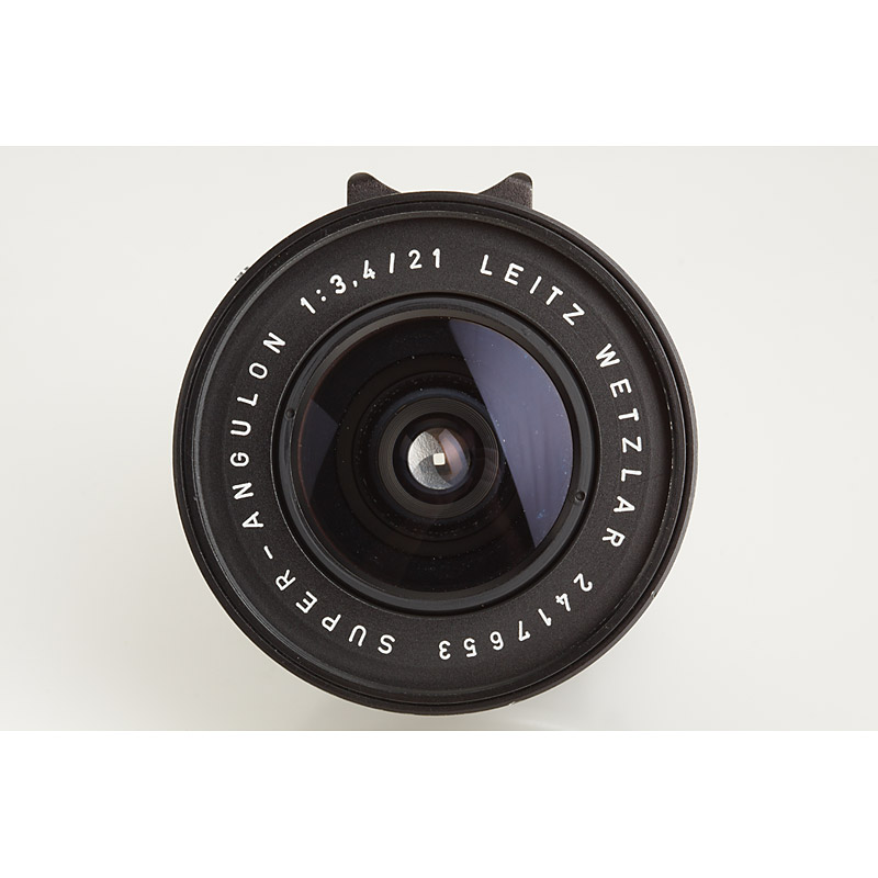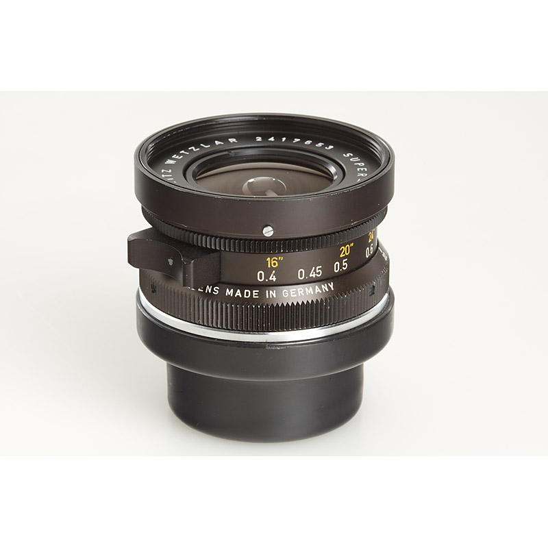 fine black Super-Angulon with good optics, caps, 12501 hood, 21mm BL plastic finder with clean lenses in case