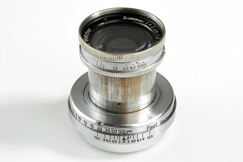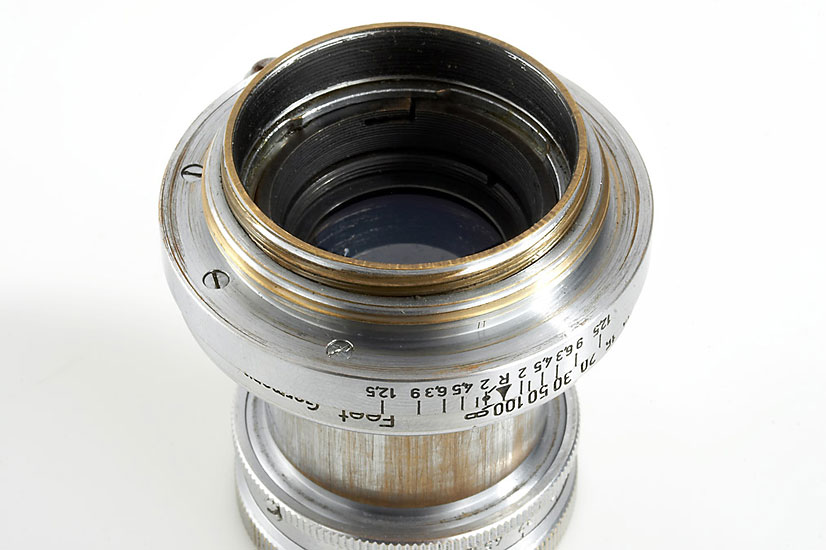 Special Summar lens (Leitz product number 42214) designed for tropical conditions. Almost unknown variant of the regular Summar (product number 42134) with an extra element at the front of the lens (optical formula B246a), which makes it a seven element lens. Leitz factory records indicate "TROPEN" for these very few lenses, which are to be found among the late Summar lenses, shortly before the introduction of the Summitar. From outside visible difference is the ball and groove held collapsing barrel, as the Summitar lenses had. The lens offered, one of very few known to exist was delivered to Schmidt, Singapore on September 3rd, 1938, compare J.L. Lager's article in VIEWFINDER vol.38
