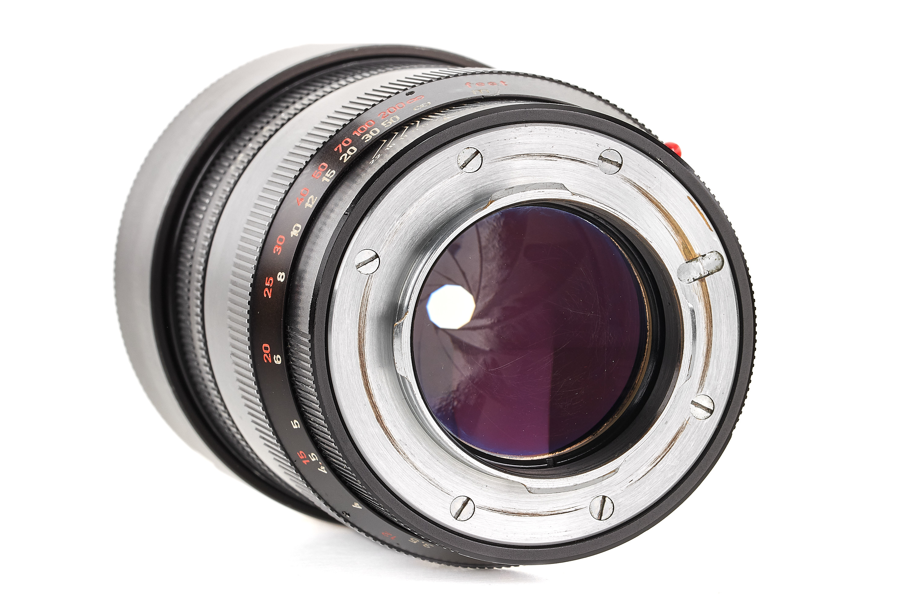 Very rare lens for Visoflex, only 275 produced with Leitz code 11910, the production was aborted and all of them were sold on the US market, in good condition, optics only showing minimal cleaning marks, with front and rear cap, delivered to Manca, New York, on 12.04.1964.