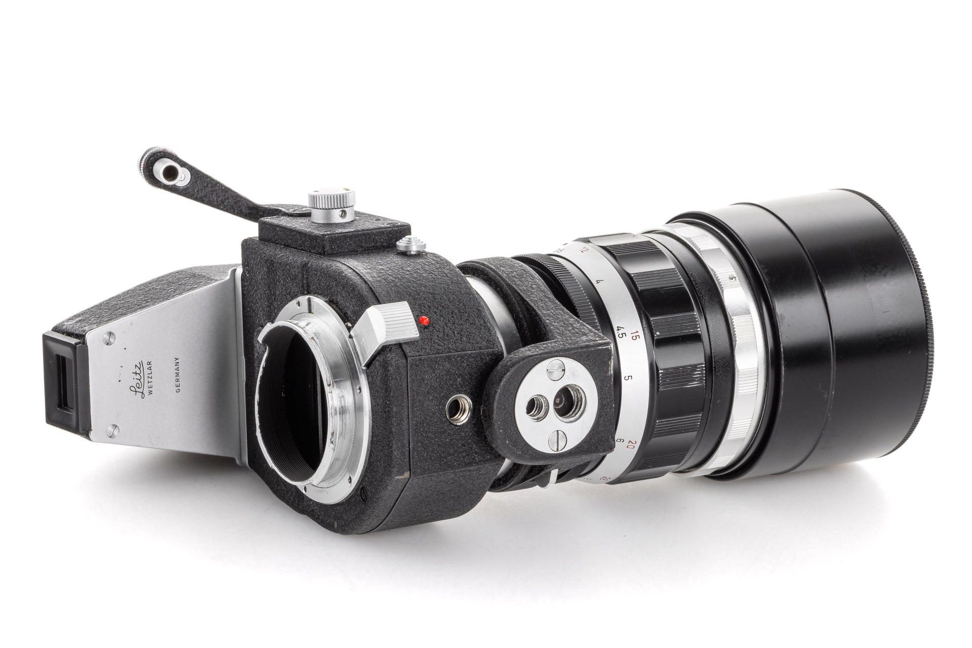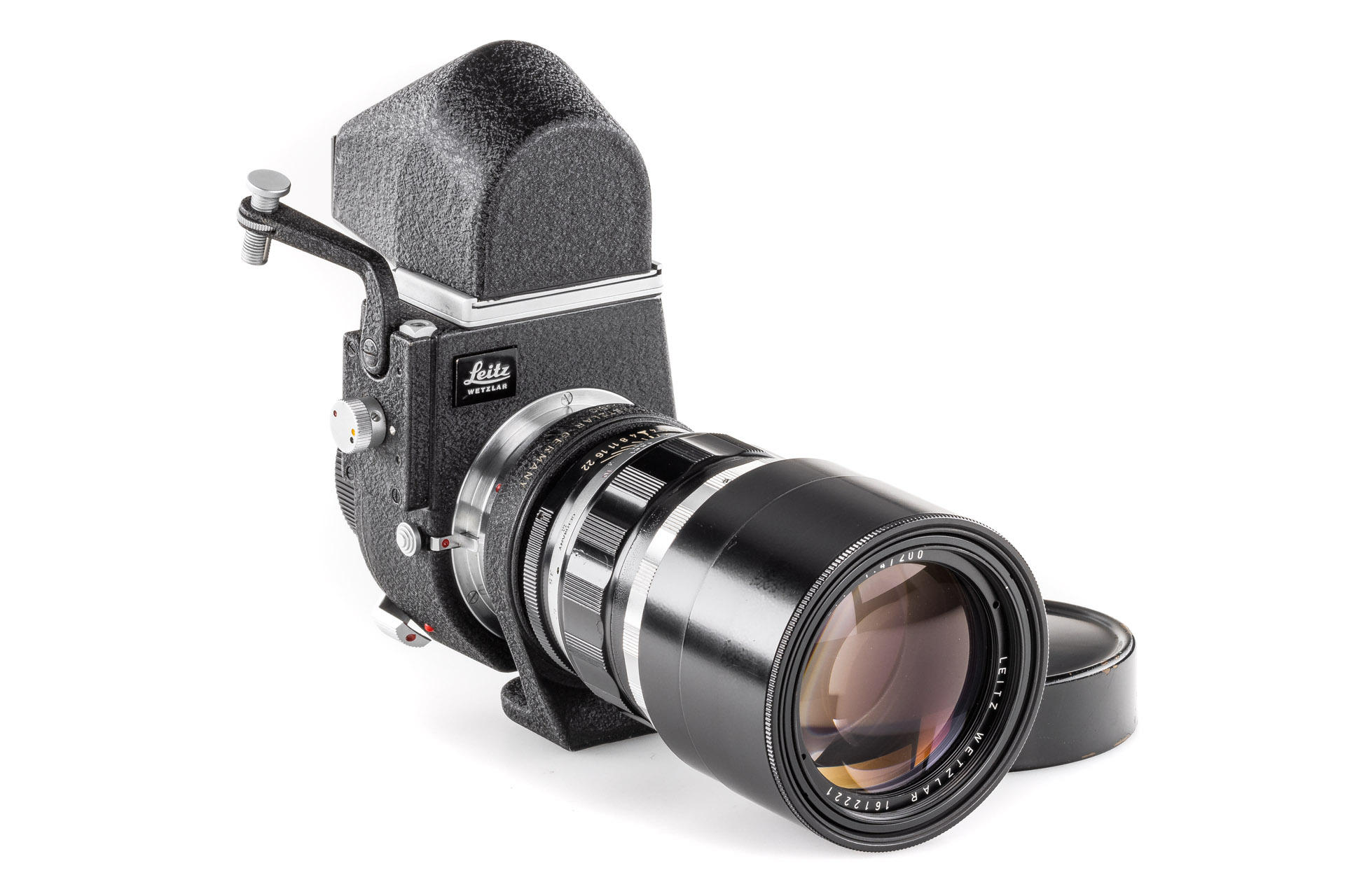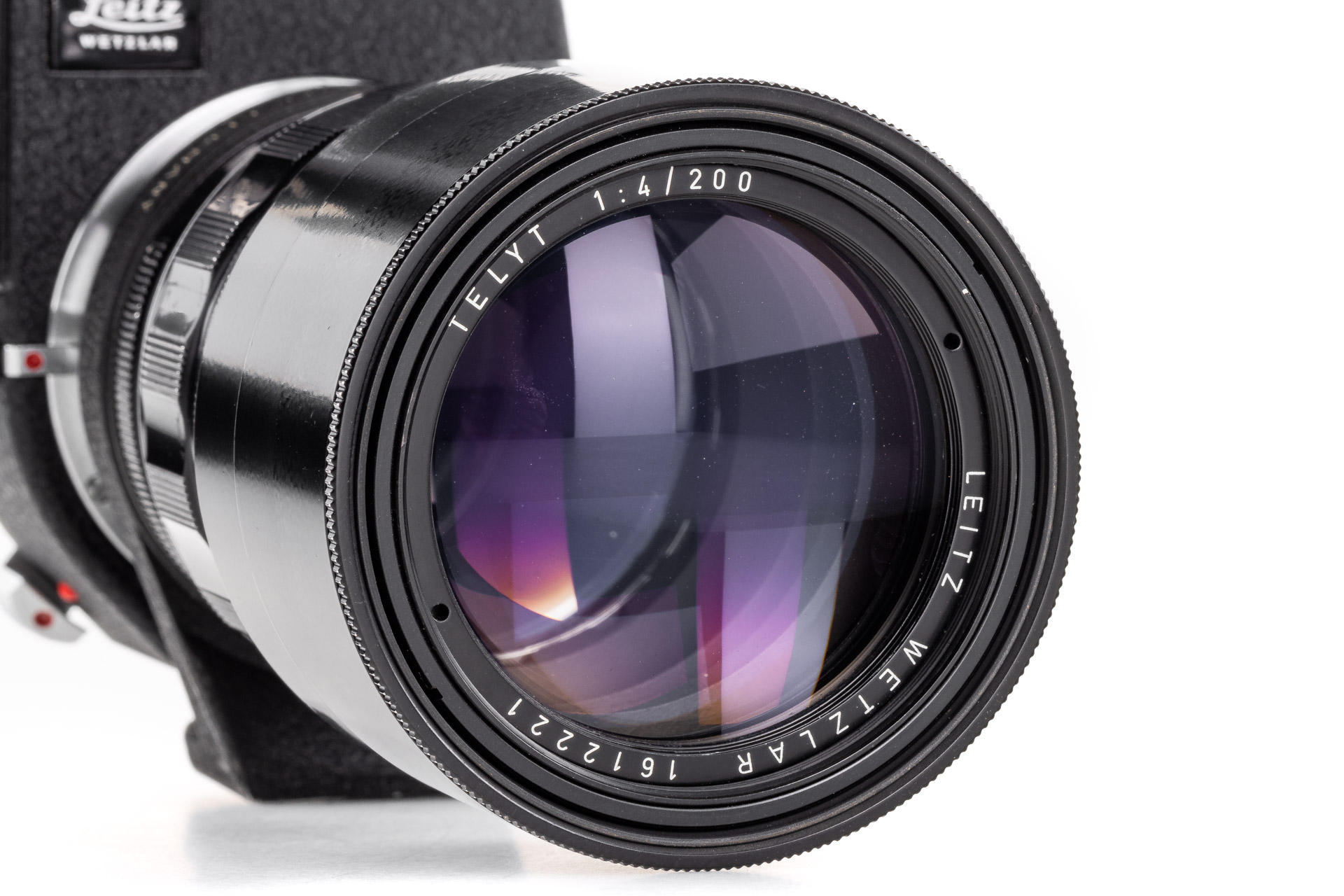 an interesting early 200mm Telyt for Visoflex, partially black painted (with typical small bubbles appearing in the black painted elements), matching lens cap, with Visoflex attachment