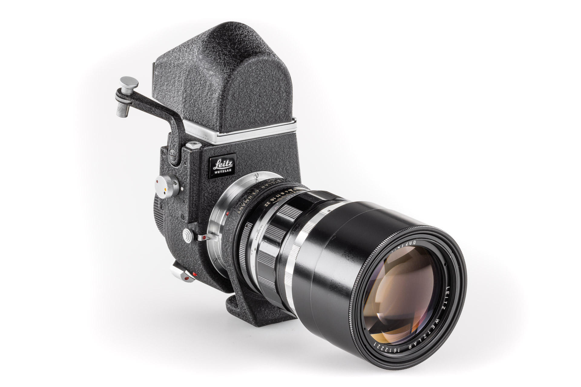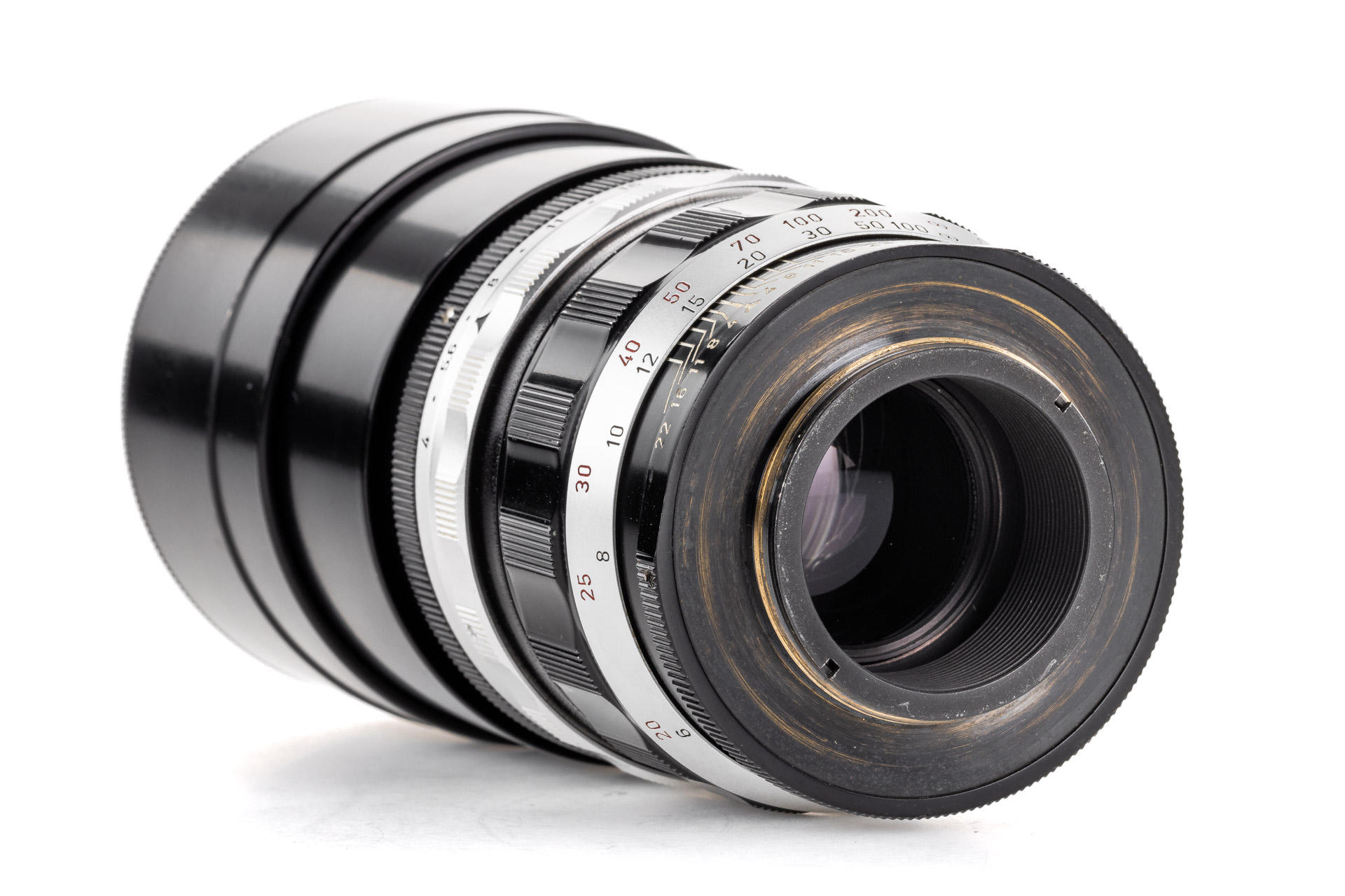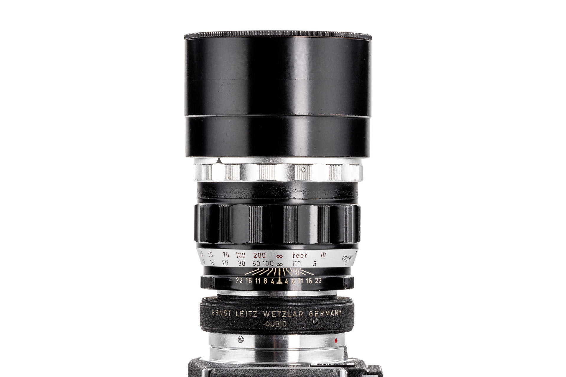 an interesting early 200mm Telyt for Visoflex, partially black painted (with typical small bubbles appearing in the black painted elements), matching lens cap, with Visoflex attachment