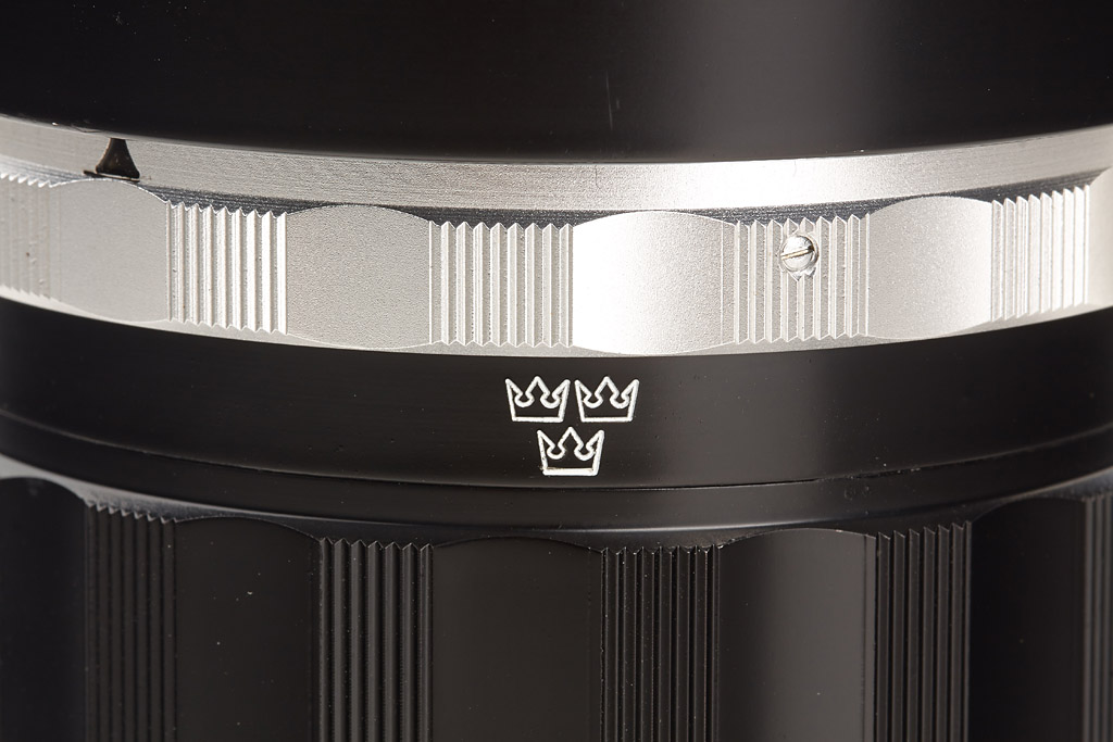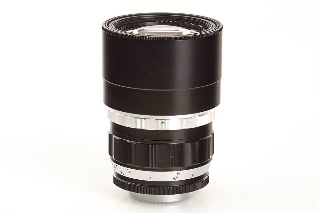 original and very rare 200mm Telyt, engraved with triple crown for the Swedish army, clean lenses, very good condition (both caps)