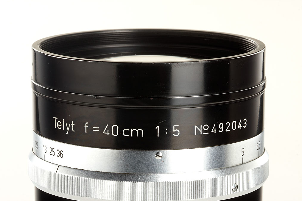 rare, uncoated pre-war Telyt 40cm in very fine condition with cap, matching hood