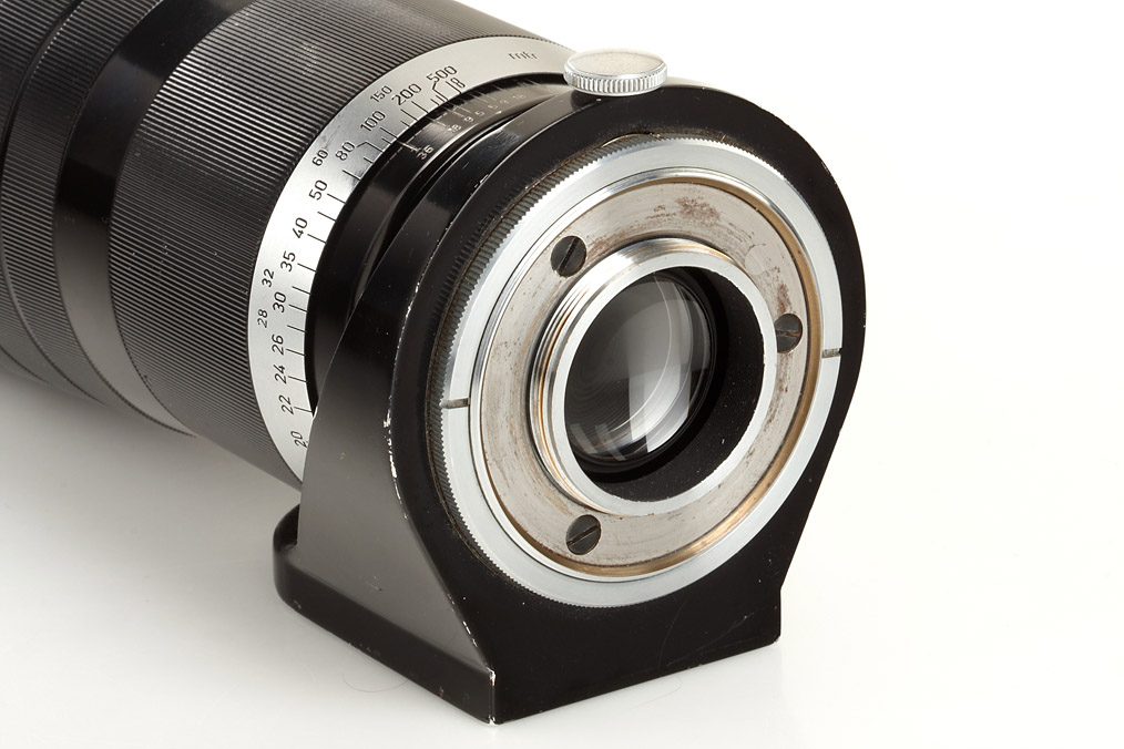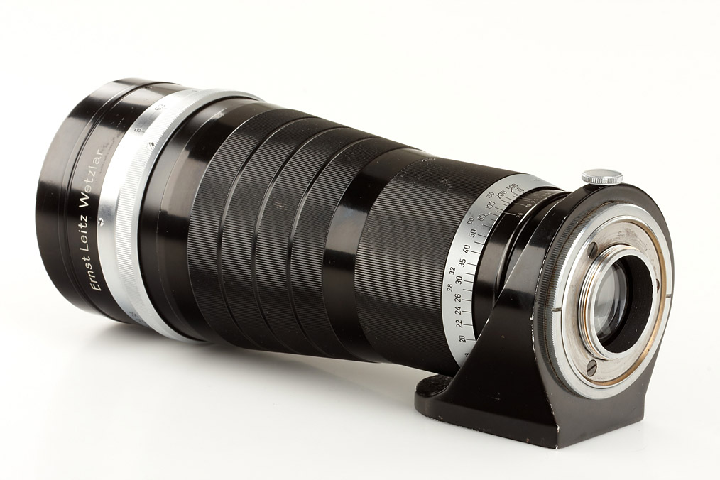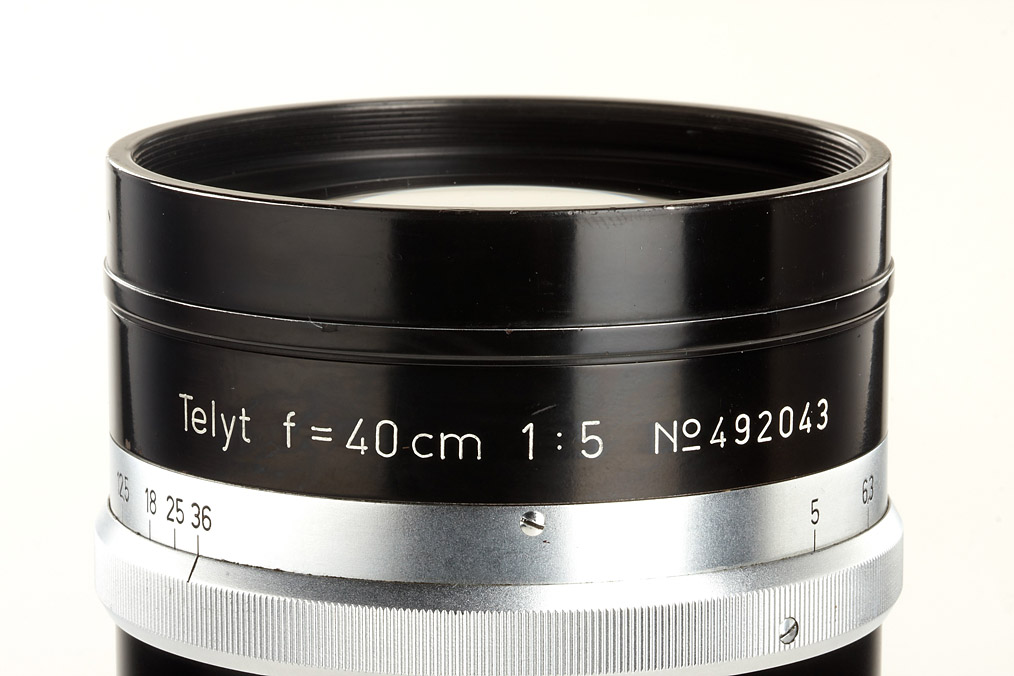 rare, uncoated first type Telyt 40cm in very fine condition with cap, matching hood