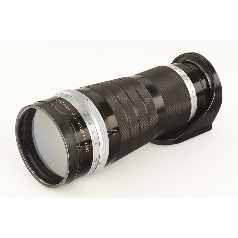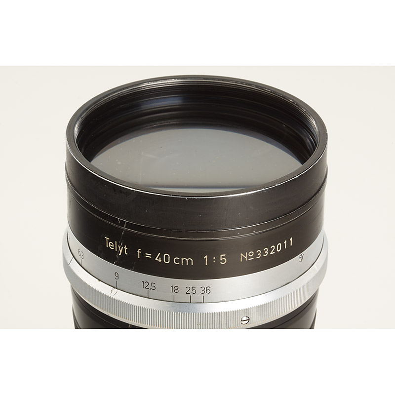 one of the very first, pre-war Telyt 40cm lenses (delivered 1938), very rare lens in fine condition (some cleaning marks), matching hood (lens no.332039 is illustrated in Lager Vol. II p.119)
