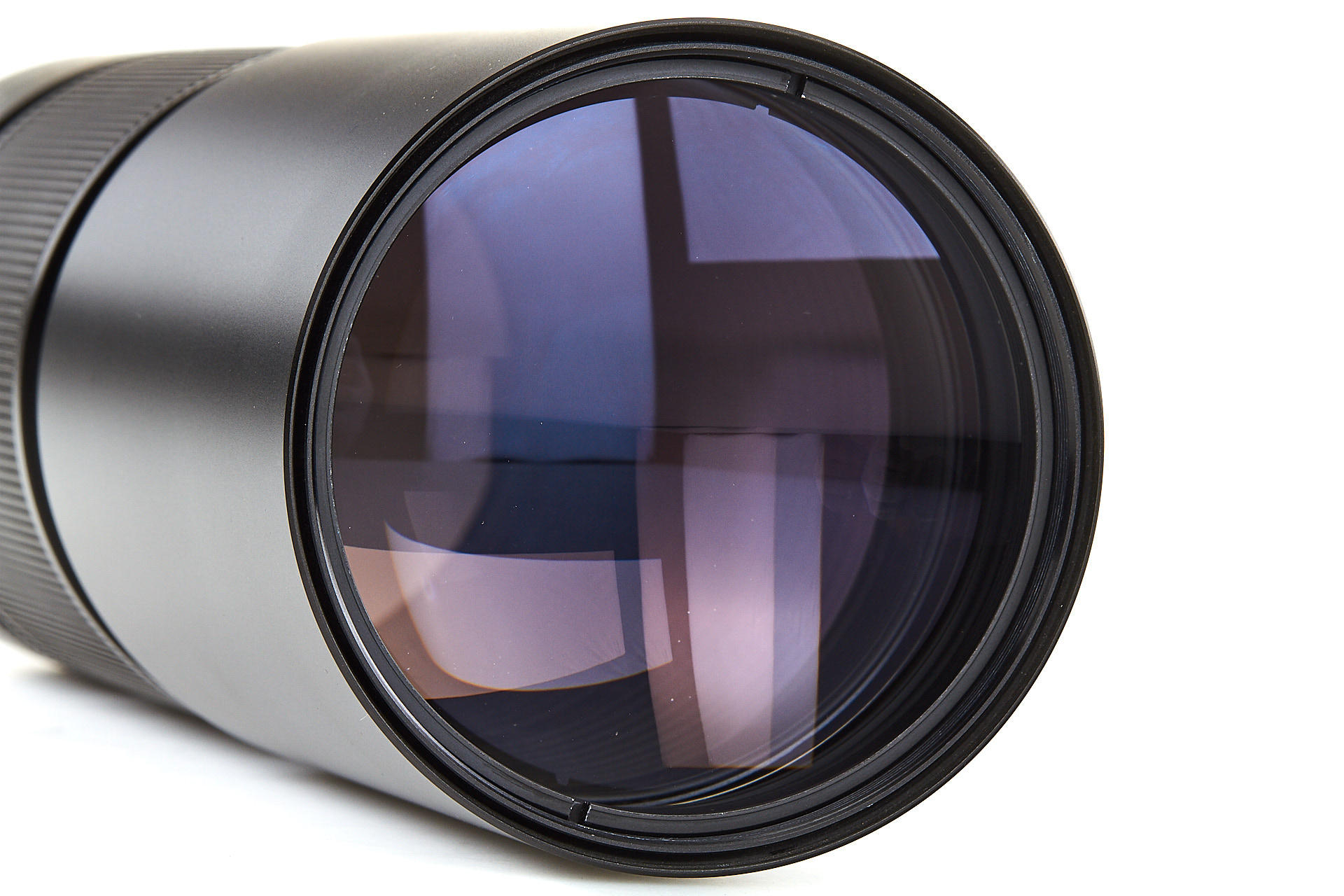 high-quality telephoto lens in near mint condition, clean lenses, with front cap, keeper and maker's box