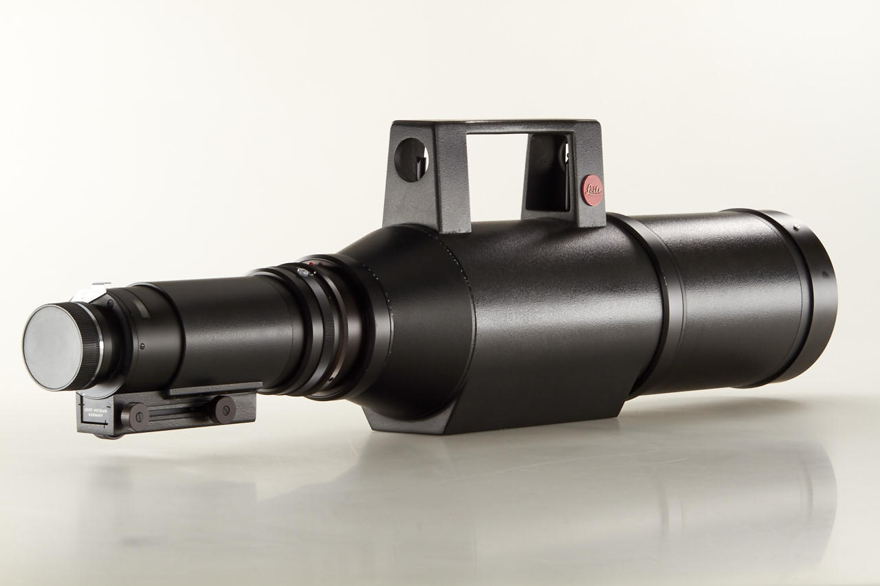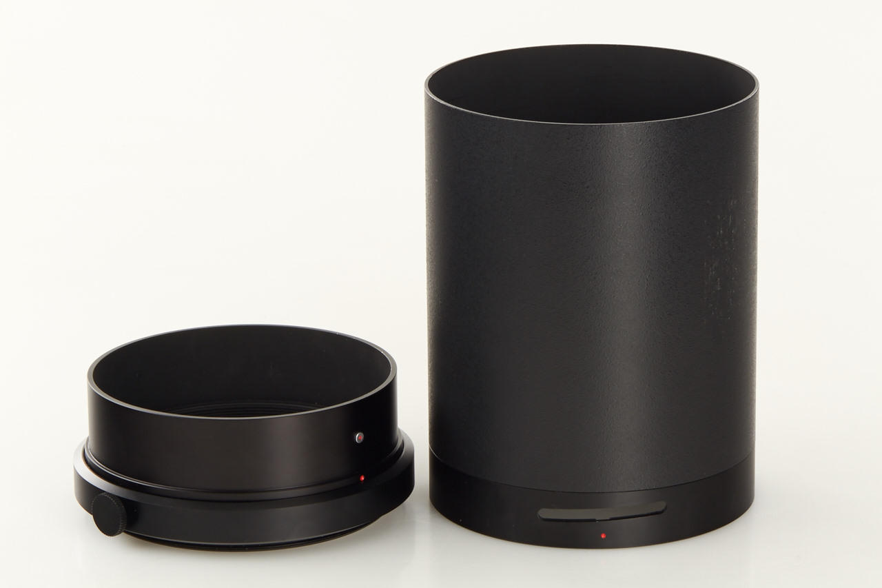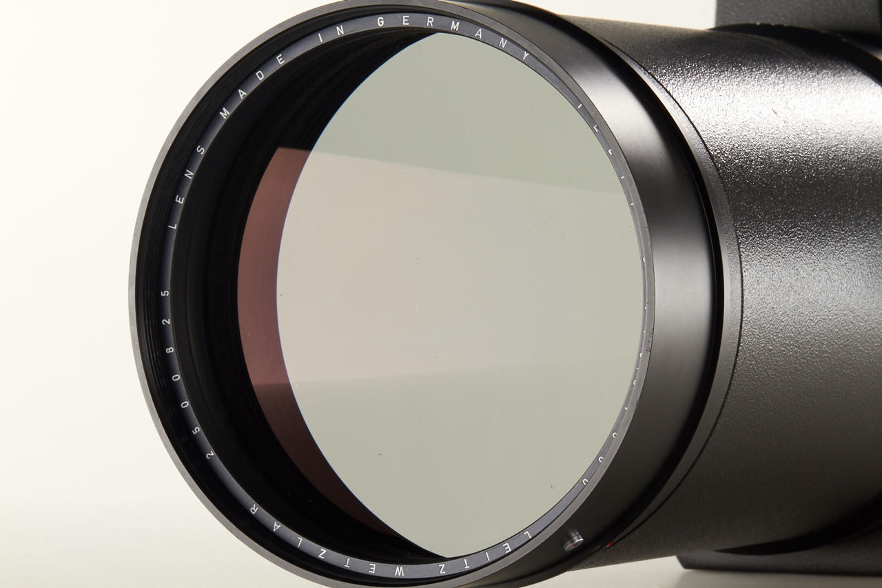 the longest tele lens for the Leica R system, very rare (in total only 224 lenses were produced), in good condition, clean optics with a minimal chip near the edge, complete with caps, front tripod collar and hood in padded aluminium case