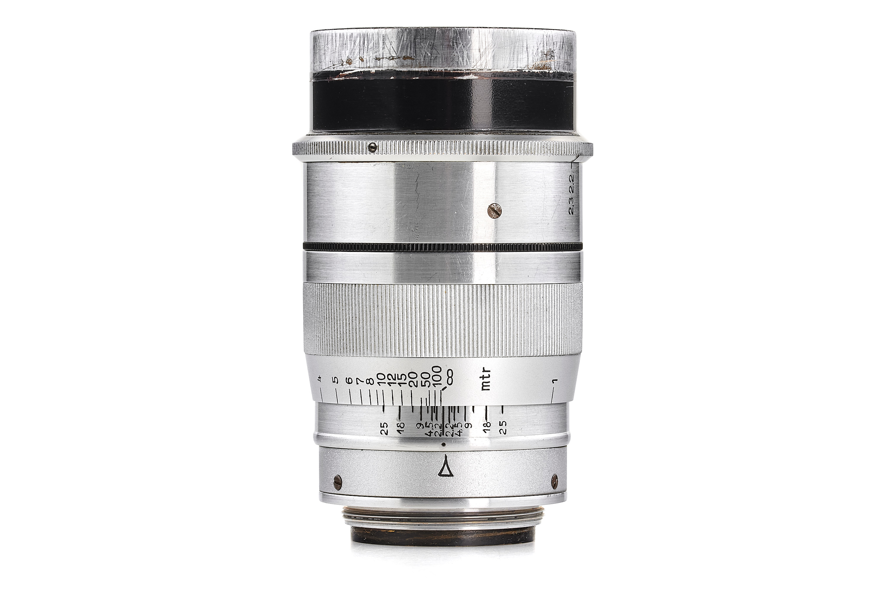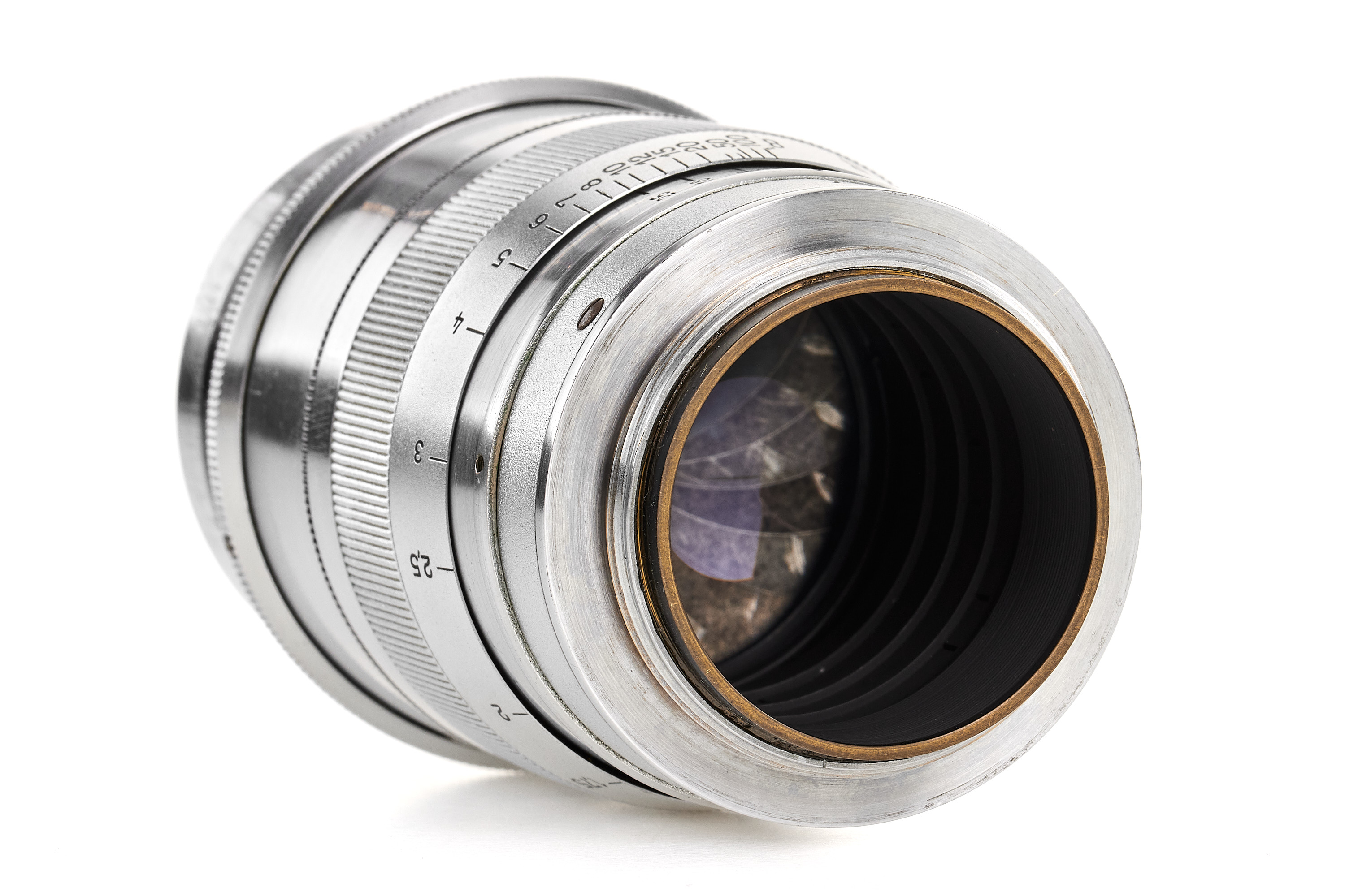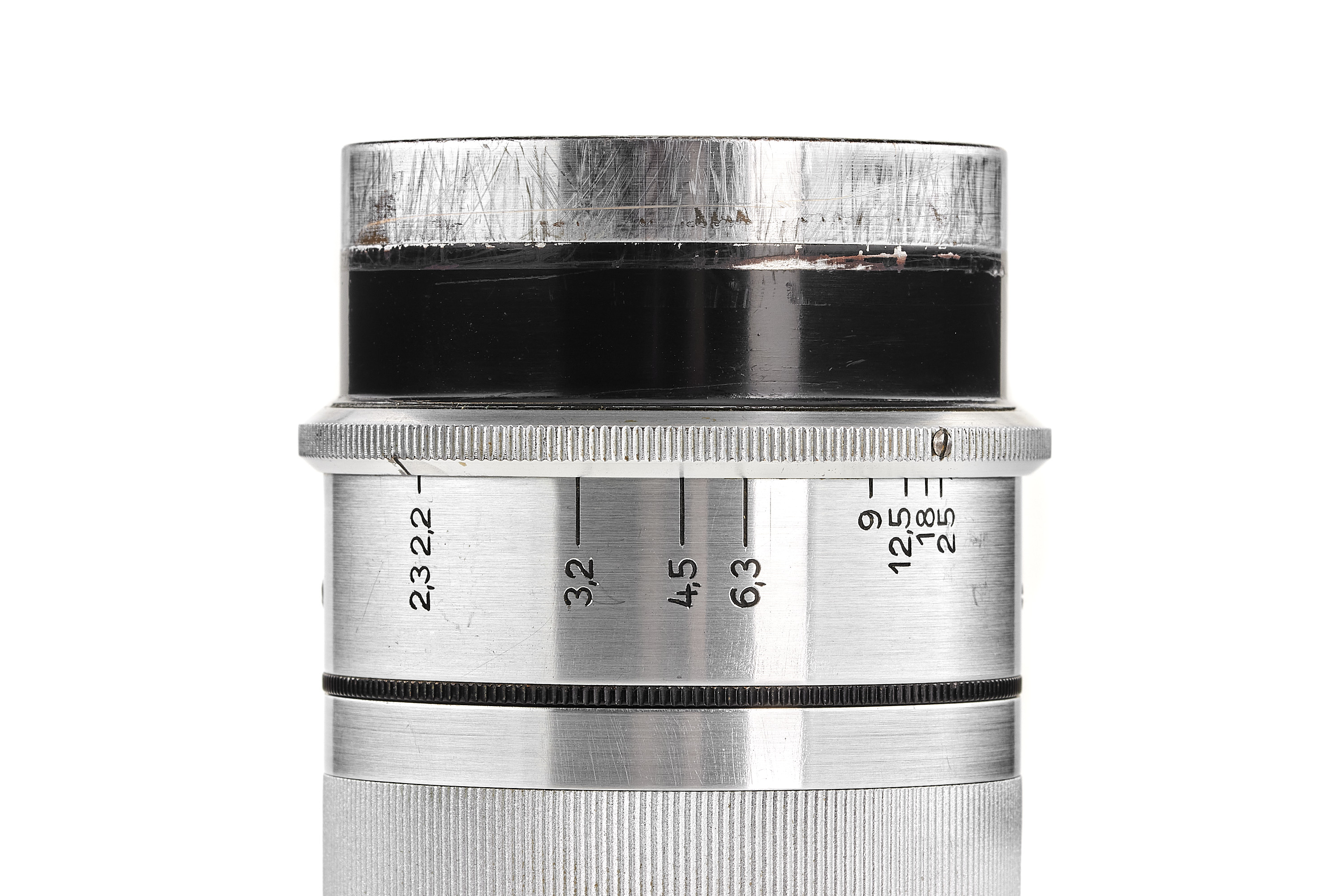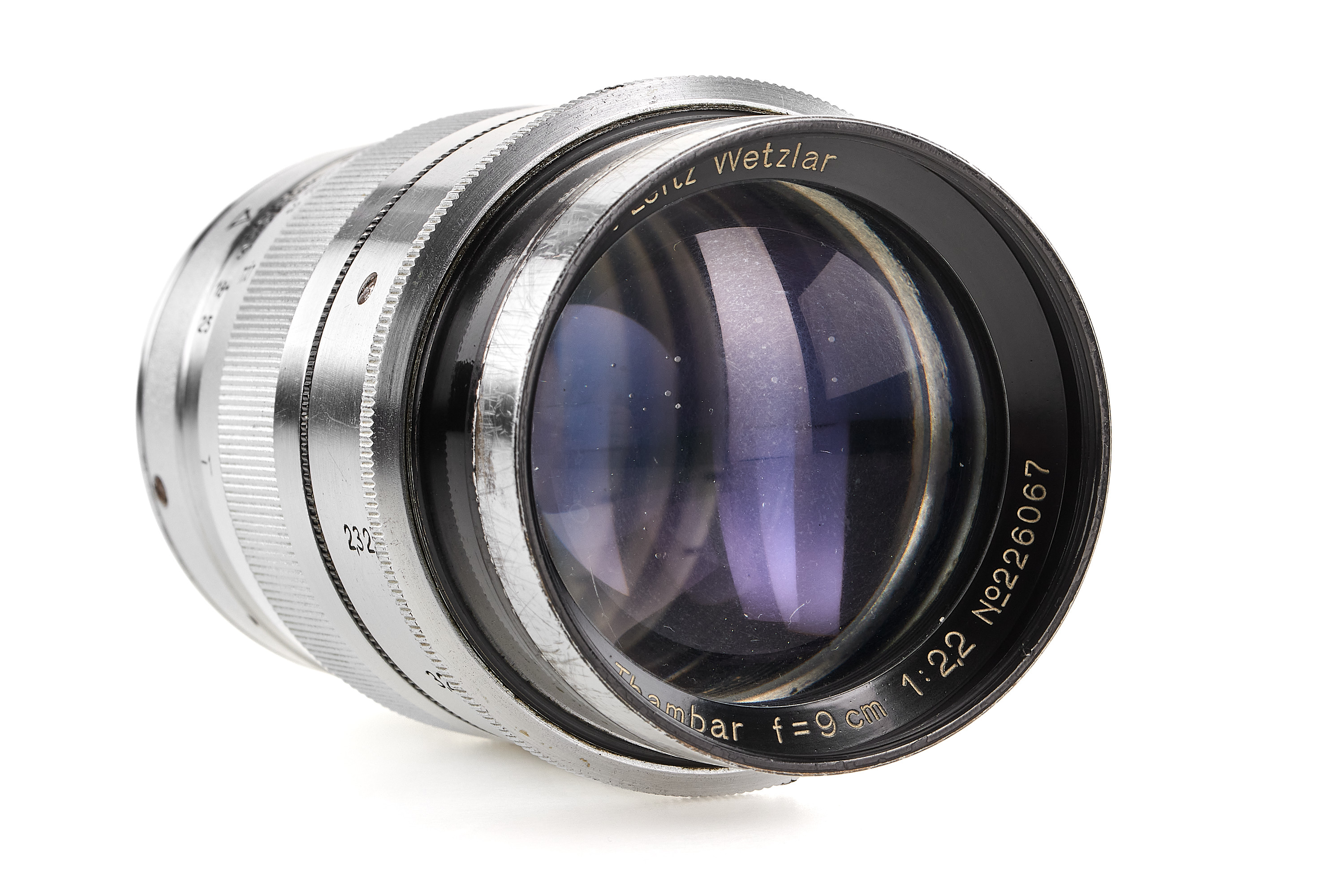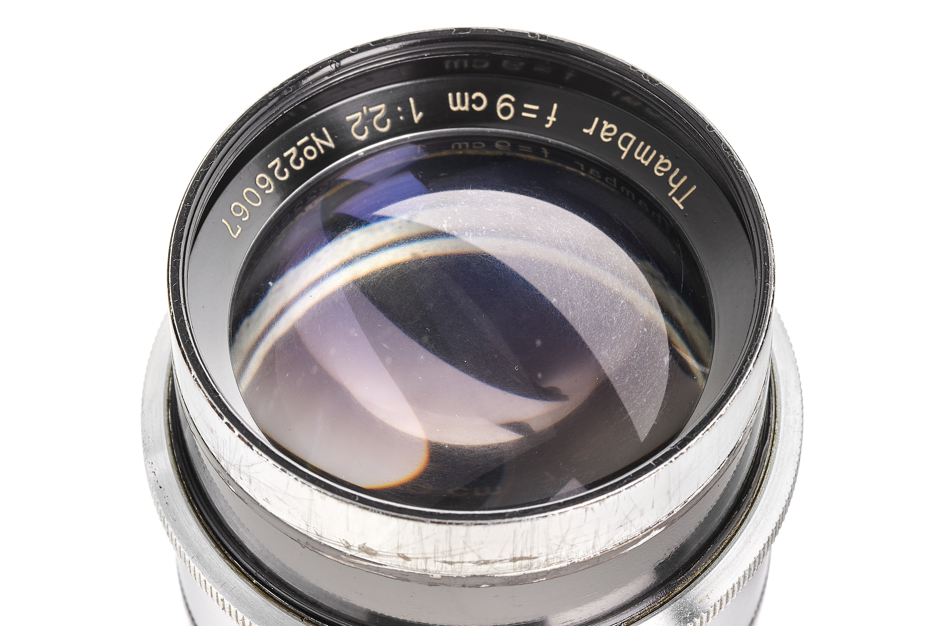 An interesting, very early Thambar (production started with the serial number 226001) in chrome finish. Most probably a prototype or a finish sample. In very good condition, including a chrome hood. Note an unusual single aperture scale.