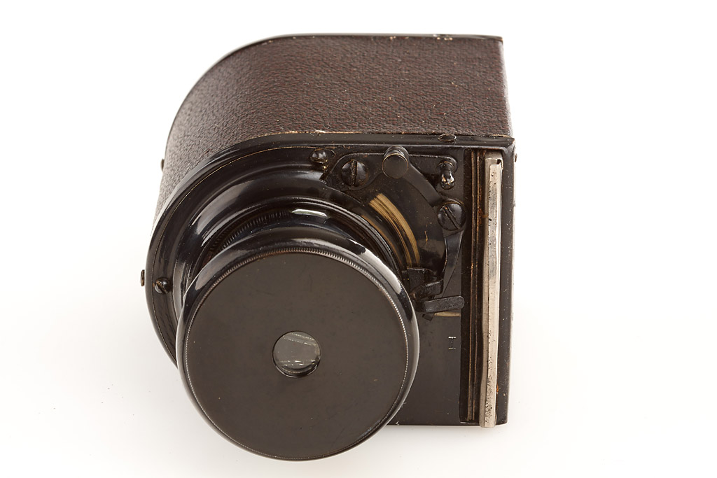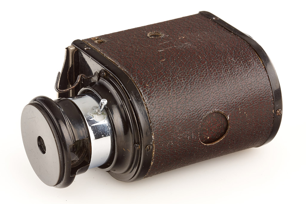 very rare monocular detective camera (a copy of Contessa Nettel Argus) with Achromatic 50mm lens, fixed focus, for 4.5x6cm exposures, including finder lens, this camera was the first Japanese 'Atom'-size camera