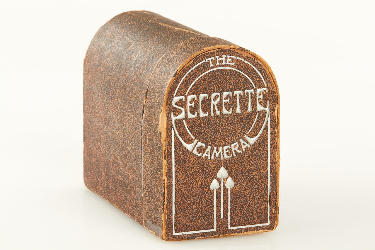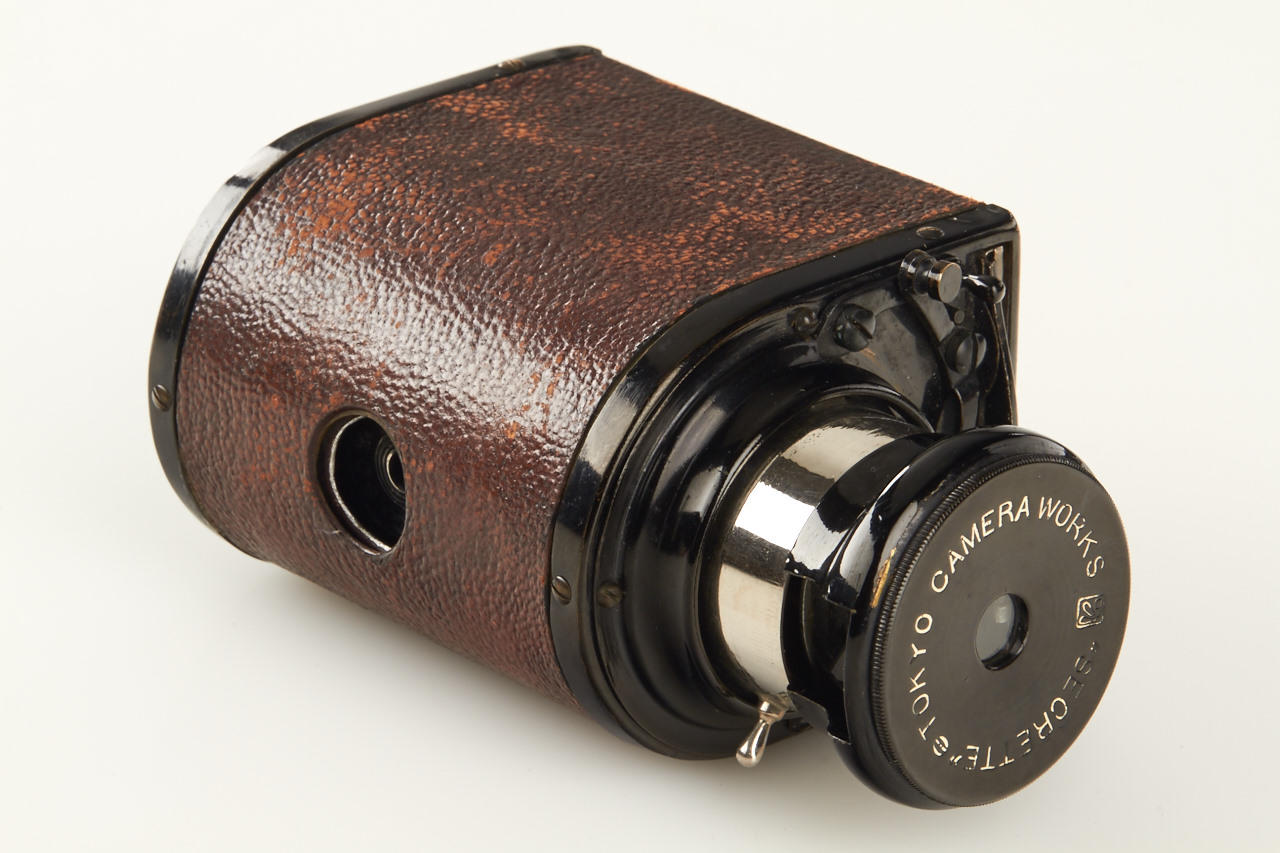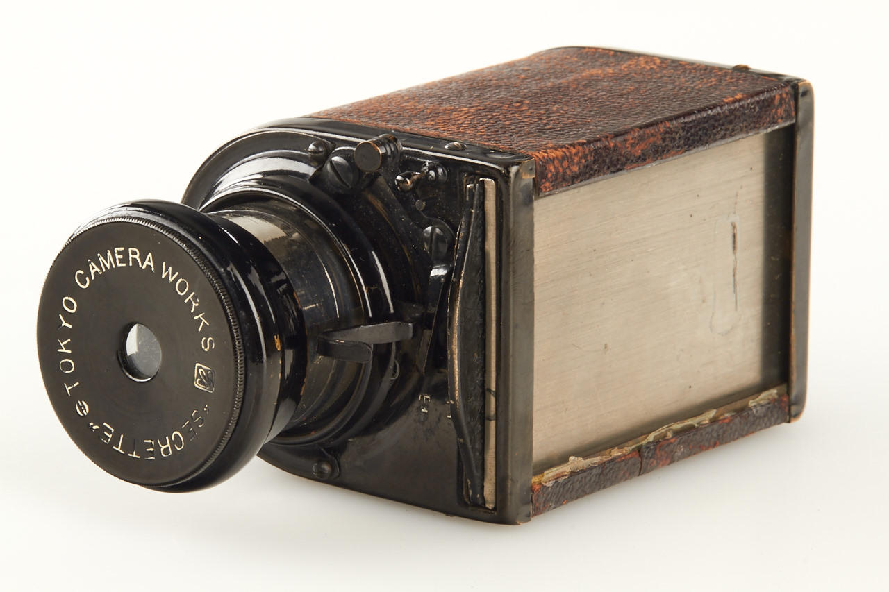 very rare Japanese 4.5x6cm monocular-shaped detective camera styled after Contessa Nettel's Argus, with Anachromatic 50mm lens, and extremely rare original maker's box