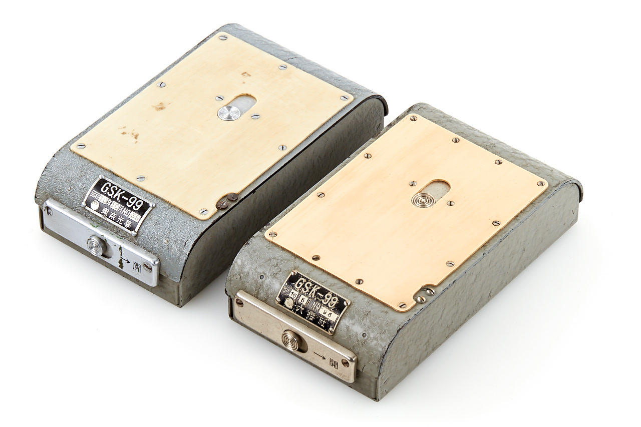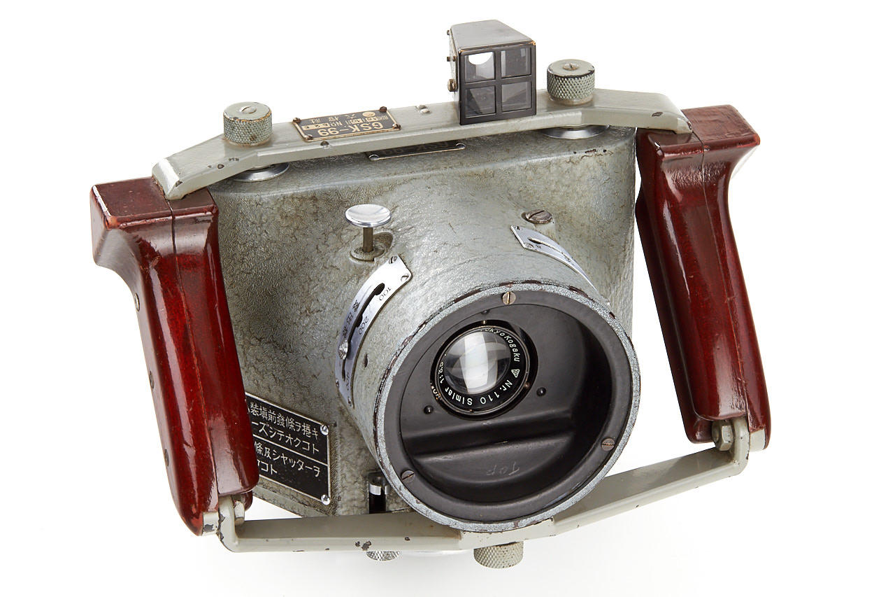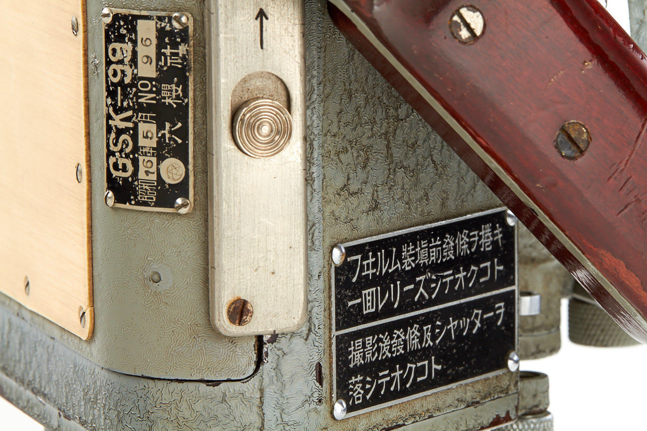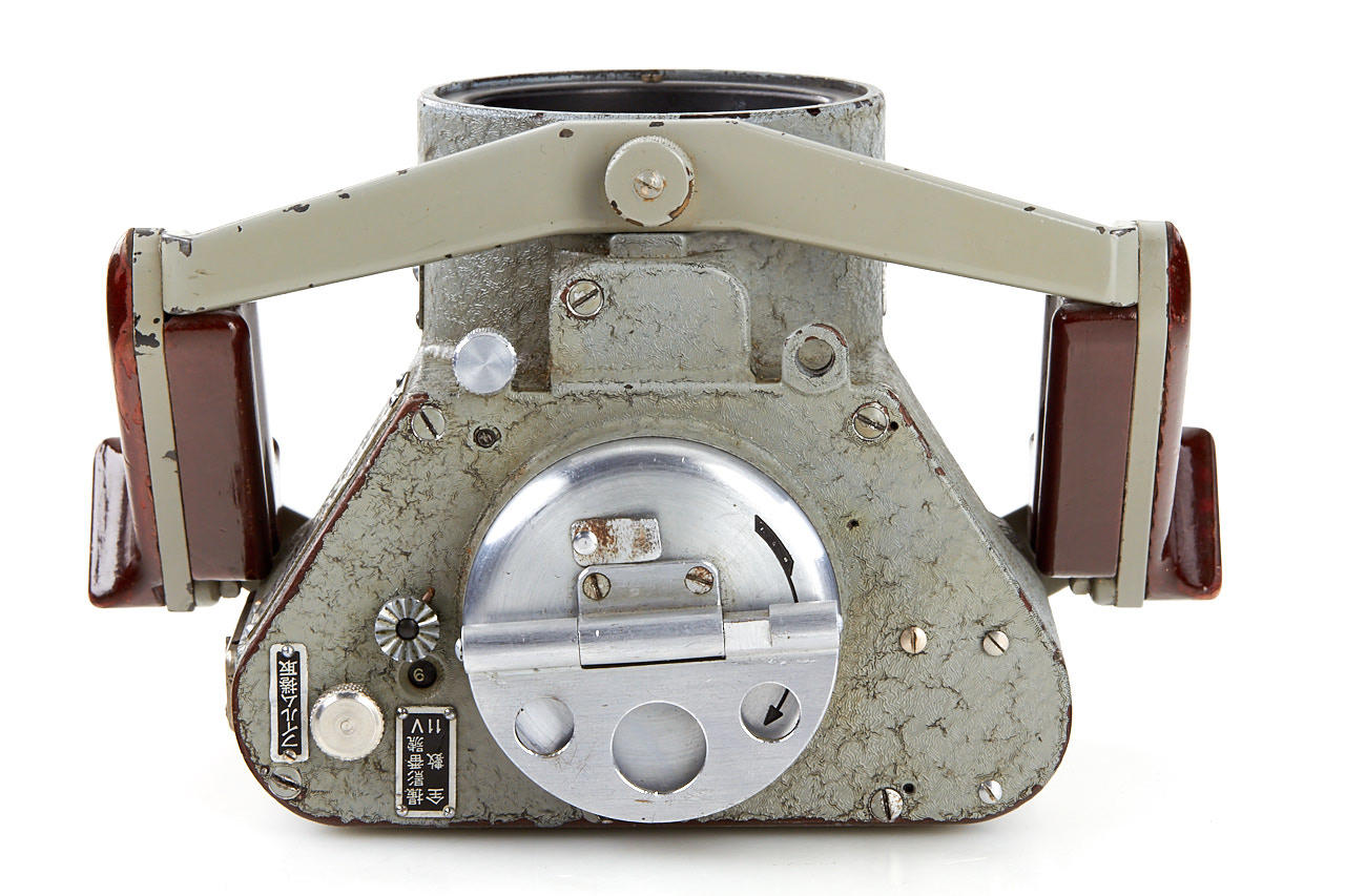 The Type 99 Ultra Small Aerial Camera (GSK-99) was used by the Japanese Army during WWII from 1940, it is one of the smallest aerial cameras made, it takes 6x6cm exposures on standard 120 film, in total around 2500 GSK-99 type cameras have been made between 1940-1945, majority of them made by Konishiroku, only around 600 units have been made by Tokyo Kogaku, the camera is in fine cosmetic condition, with grip and finder, Simlar 3.5/7.5cm no.110, two additional magazines, original metal case