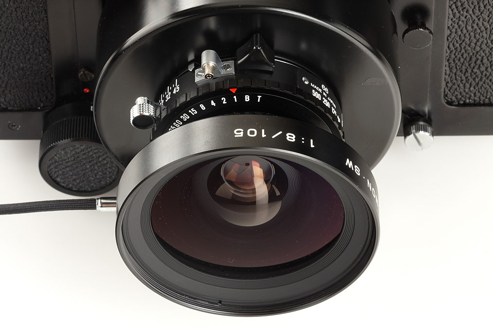 for 6x24cm exposures on 120 roll film, with Fujinon-SW 8/105mm in perfect working Copal shutter, cable release, strap, two caps, maker's box