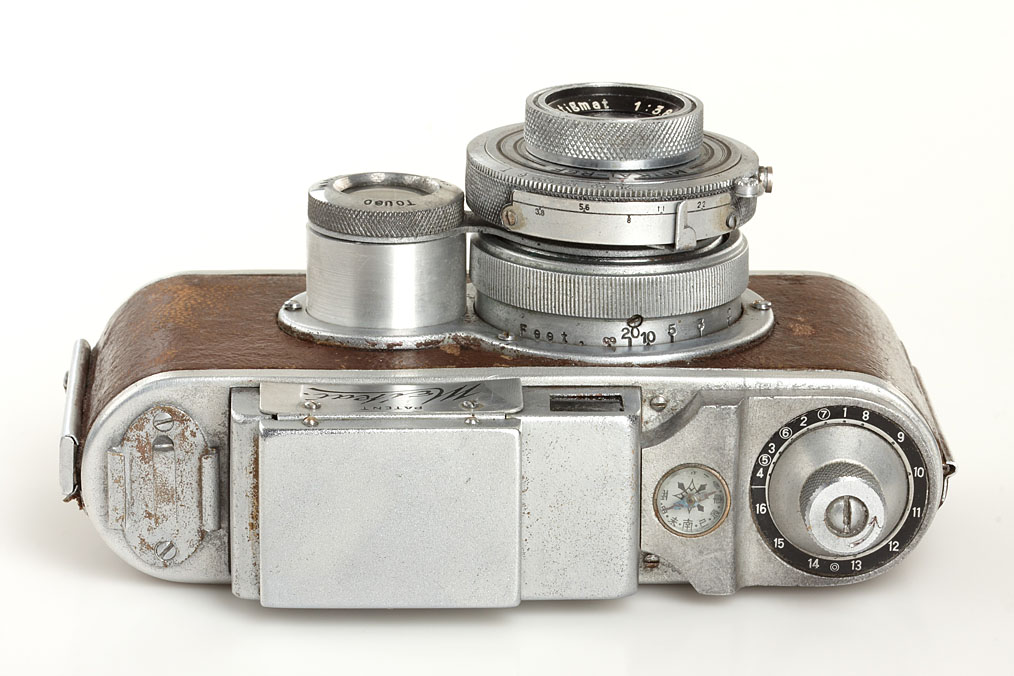 rare, side-by-side TLR for 3x4cm exposures on special roll film, Anastigmat 3.8/50mm M.K., compass on top plate, copy of Photographica Cabinett 43/2008