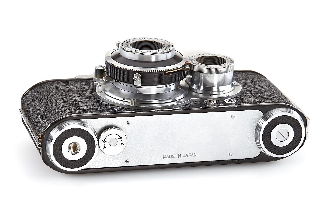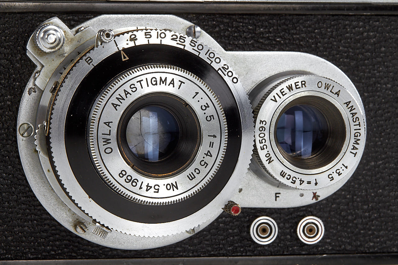 rare Japanese 35mm side-by-side 35mm TLR camera with Owla Anastigmat 3.5/4.5cm no.541968, in excellent condition