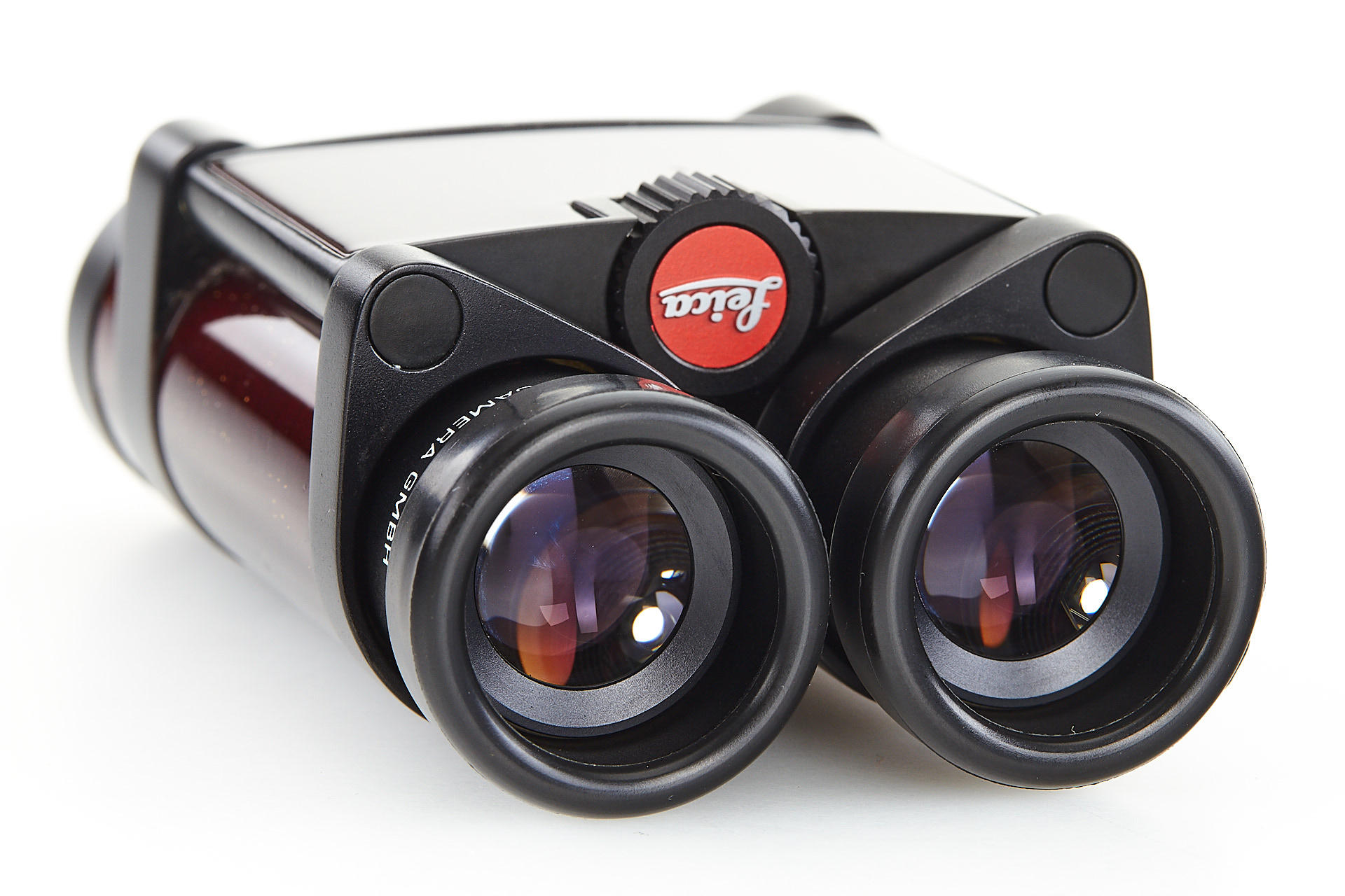 unnumbered Trinovid binoculars finished in red urushi lacquer, in near mint condition with good optics; Leica planned to release several different colours of these binoculars in 1997, but they never went into production