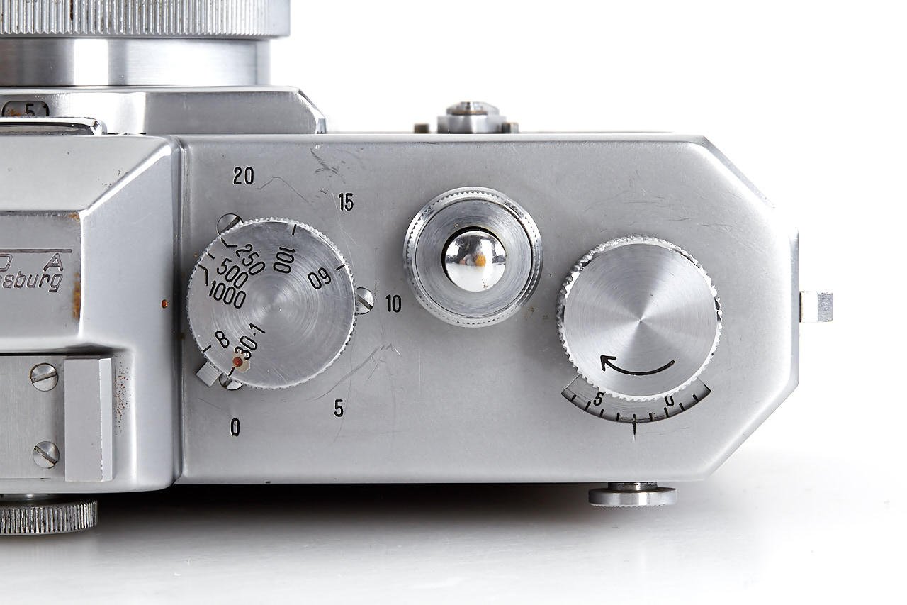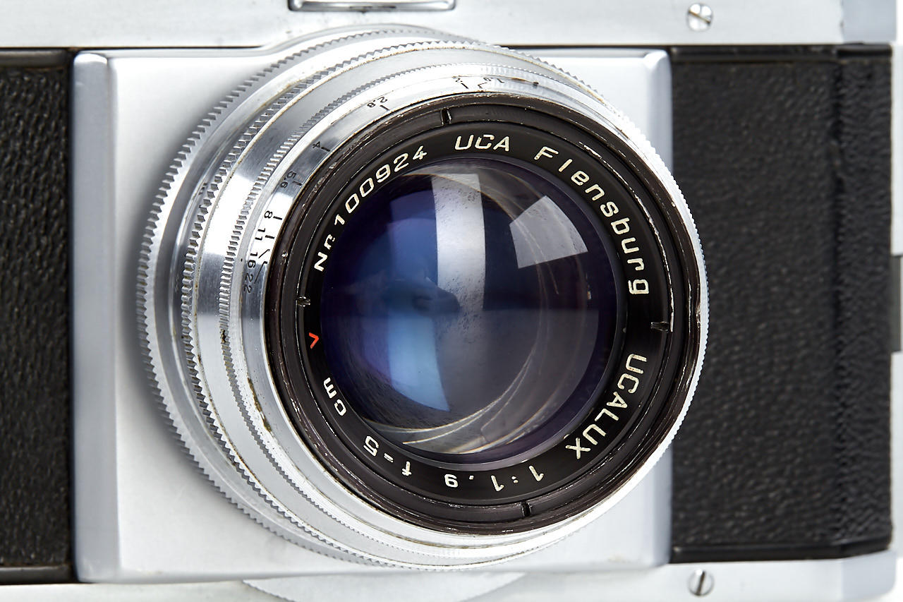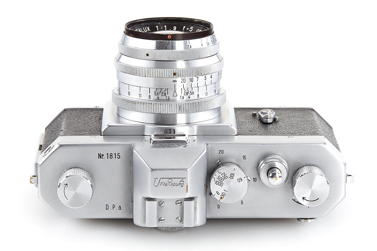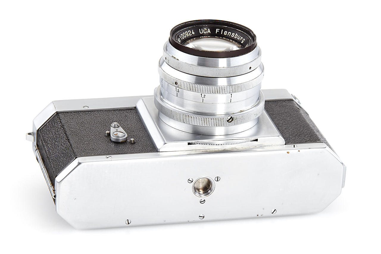 a successor to Neucaflex, very rare 35mm camera combining features of SLR and viewfinder cameras, in excellent cosmetic condition and working order, with M40 mount Ucalux 1.9/5cm no.100924 (notable cleaning marks on front element)