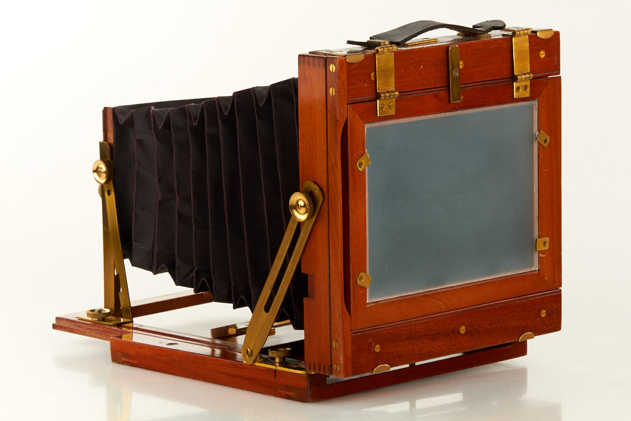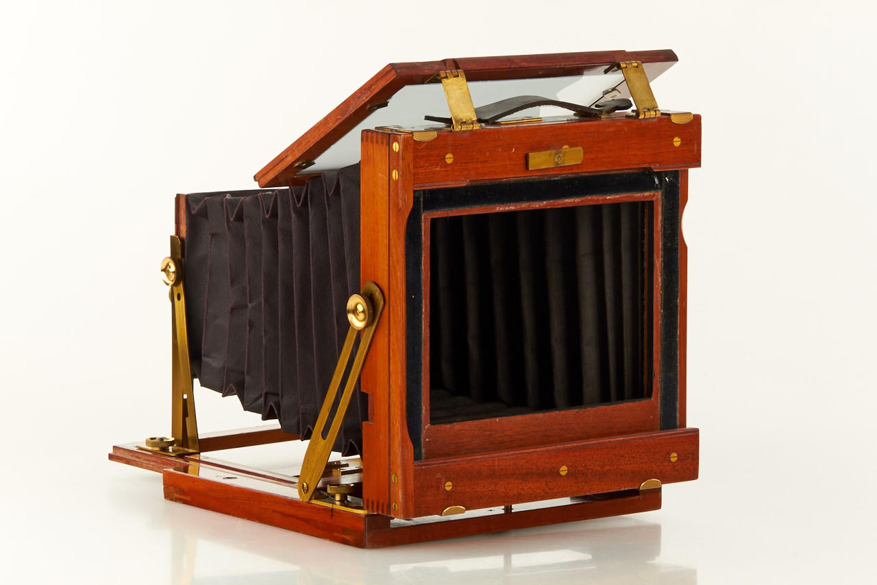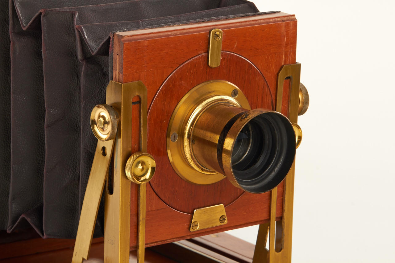 12x16cm field camera in beautiful condition, original red bellows, Busch Rapid Aplanat 8/8", with two wooden double film holders