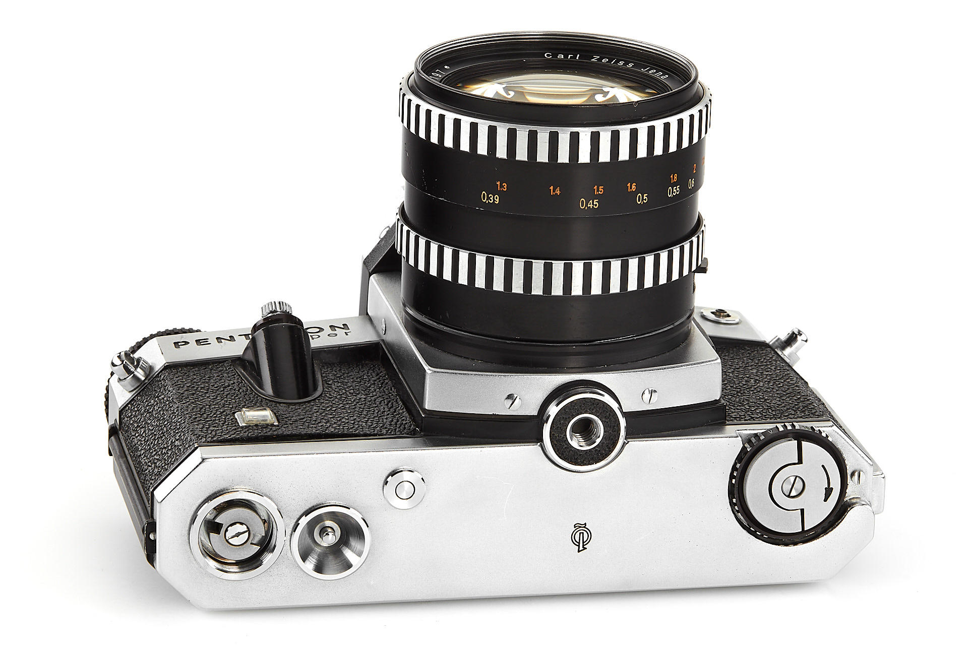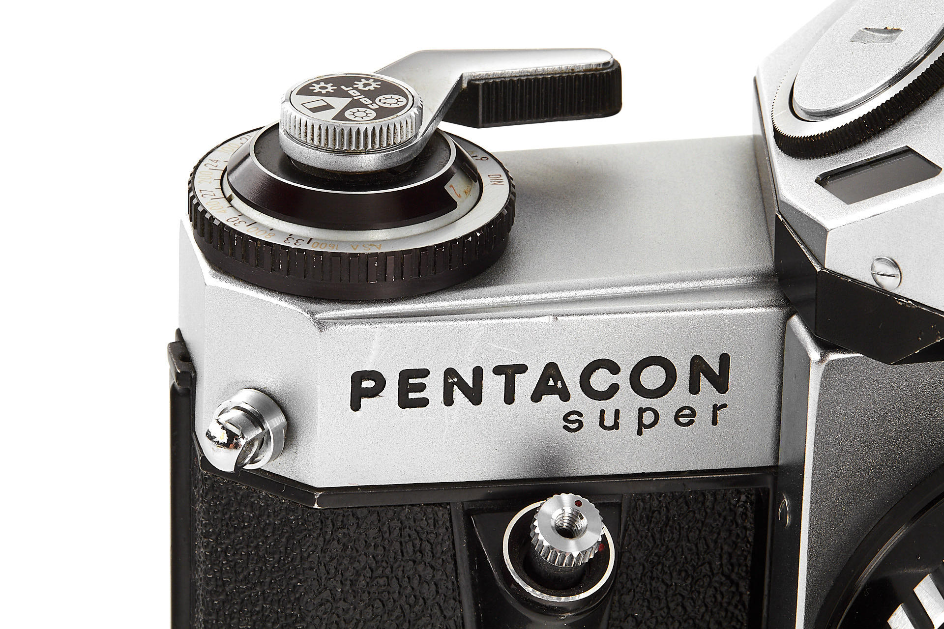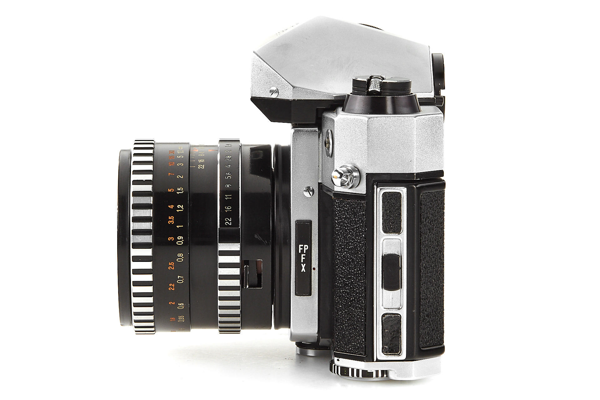 Only 4579 cameras were produced from this top of the line East German camera, this being one of the last body´s made, the most versatile camera within the Pentacon/Praktica production line, body in very good working condition, prism finder numbered '4869', light meter working, with matching and very rare M42 Pancolar 1.4/55mm no.7173197, from a batch of 1000 lenses from 1967, using glass containing Thorium hence its golden yellow colour (clear optics, some small scratches on front element), front cap.