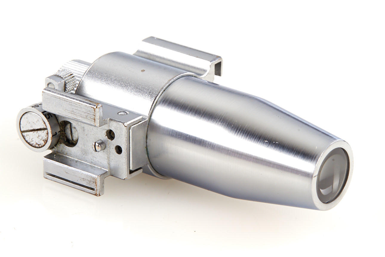 very rare chrome torpedo finder with parallax attachment, with frames for 3.5, 5 and 13.5cm lenses, very good condition