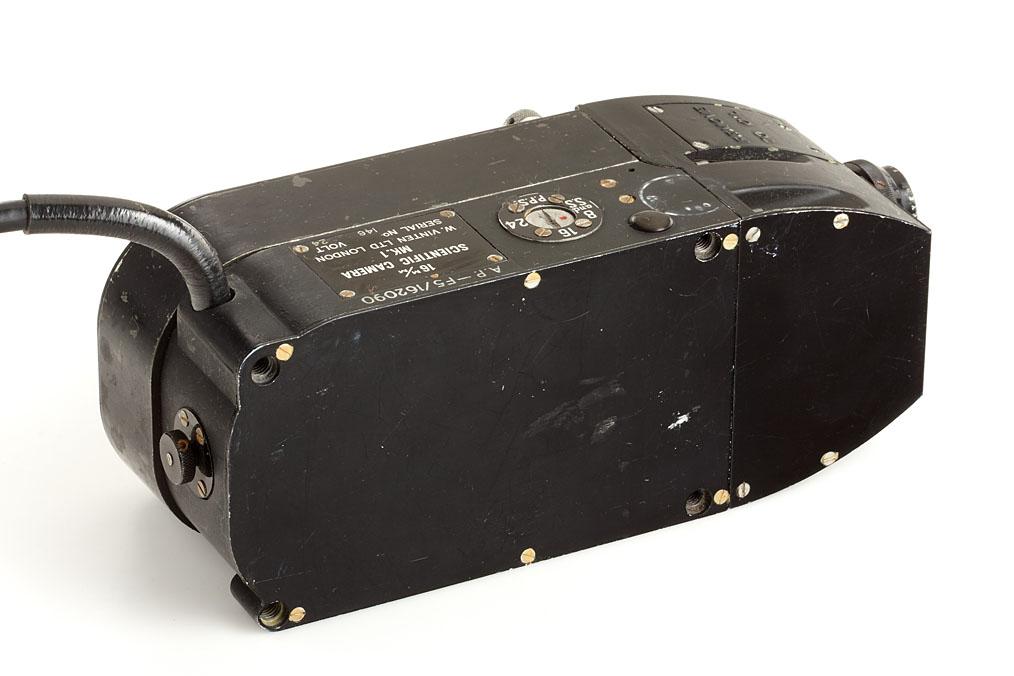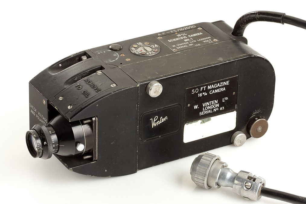 Scientific Camera MK.I (two compact aerial surveillance cameras each with a 50ft magazine for 16mm film, one camera with T.T-H. Cooke Kinetal T2 1.8/12.5mm no.570501 (cap), the other without. Lens slightly cloudy, coating slightly damaged, works on 12v, four preset speeds, not checked, copy of documentation included), Vinten High Speed 16mm Cine Aircraft Cameras (two 16mm high speed cameras making 250 FPS, lavishly equipped each with two 50ft magazines, two Taylor-Hobson 2/1.5" and two Tele-Dallon 3.5/0.5in, not checked, copy of documentation included) (4)