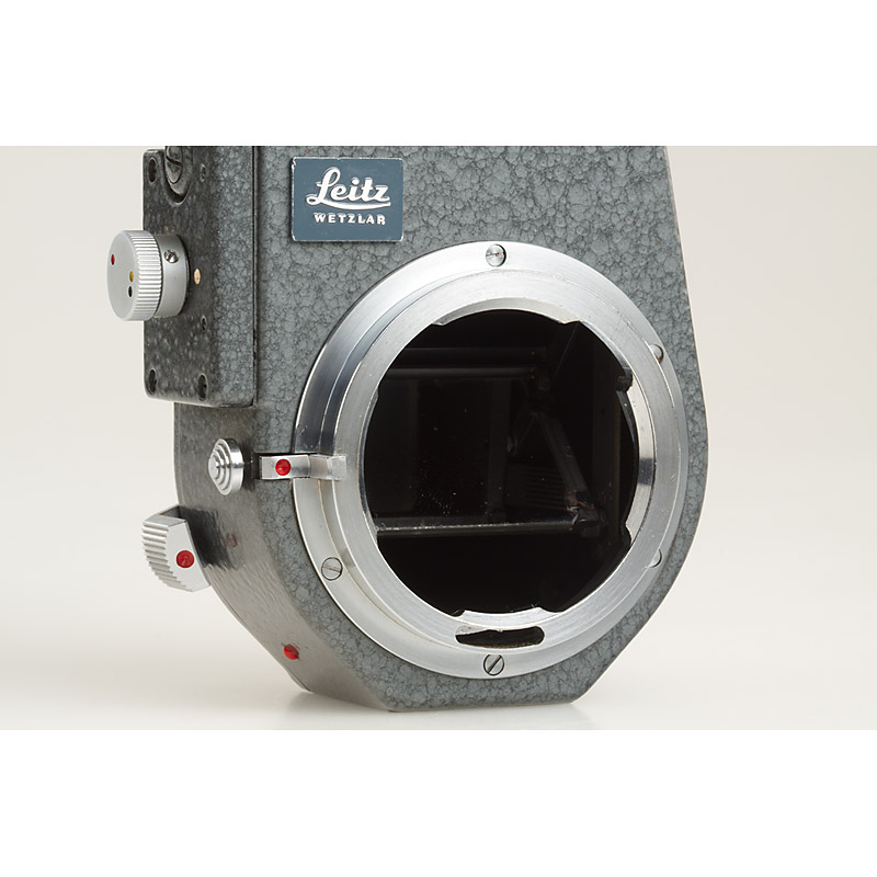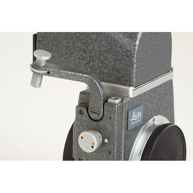 100% original grey hammer tone Visoflex III with matching prism for grey MD, in mint condition, 6 o'clock cut-out on flange (purpose unknown), see 'Lager Vol.I' p.221, Wilhelm Albert 'Geburtstage der Leitz-Foto-Konstruktionen ab 1927' Seite 220 - ex Paul-Henry van Hasbroeck collection