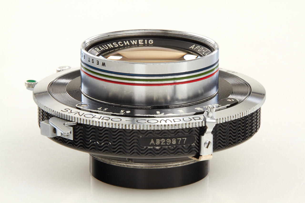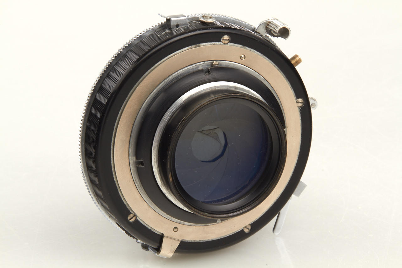 rare lens in very good condition with clean optics, in working Synchro Compur shutter, with mounting ring
