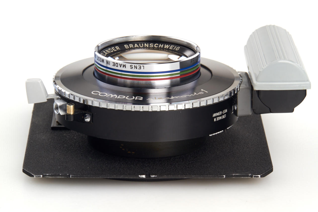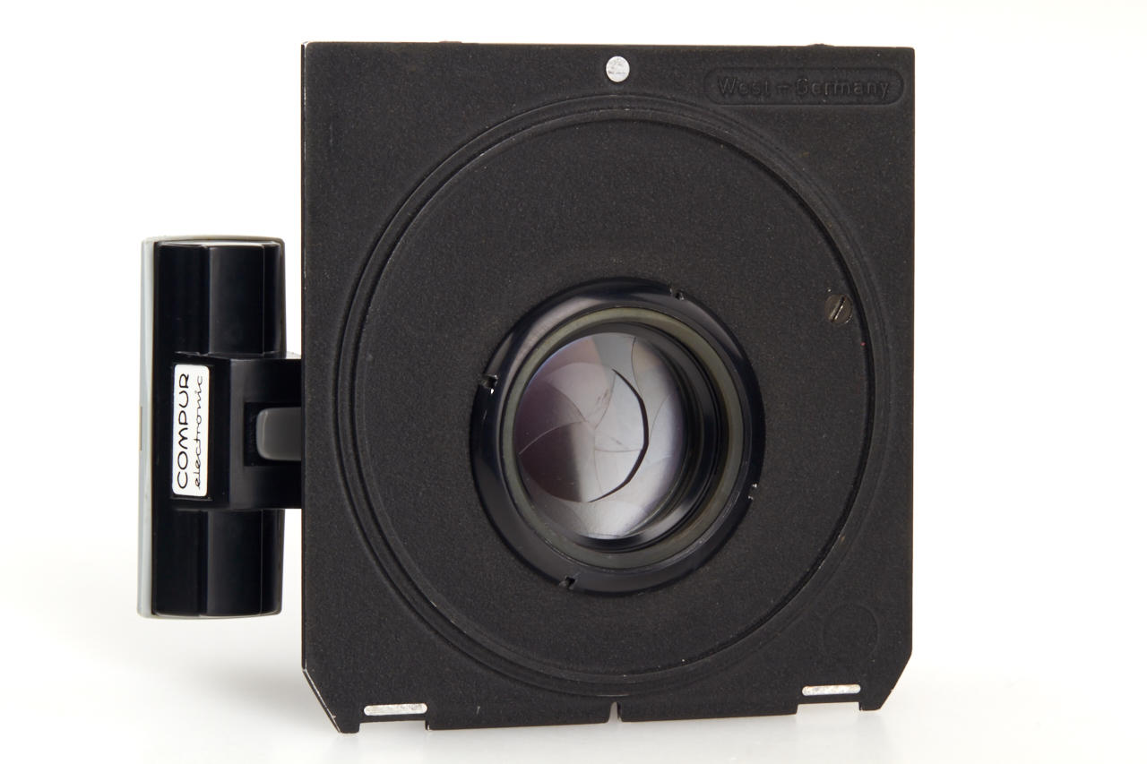 in near mint condition with clean optics, in working Compur Electronic 1 shutter, on Linhof lens board, with original front cap