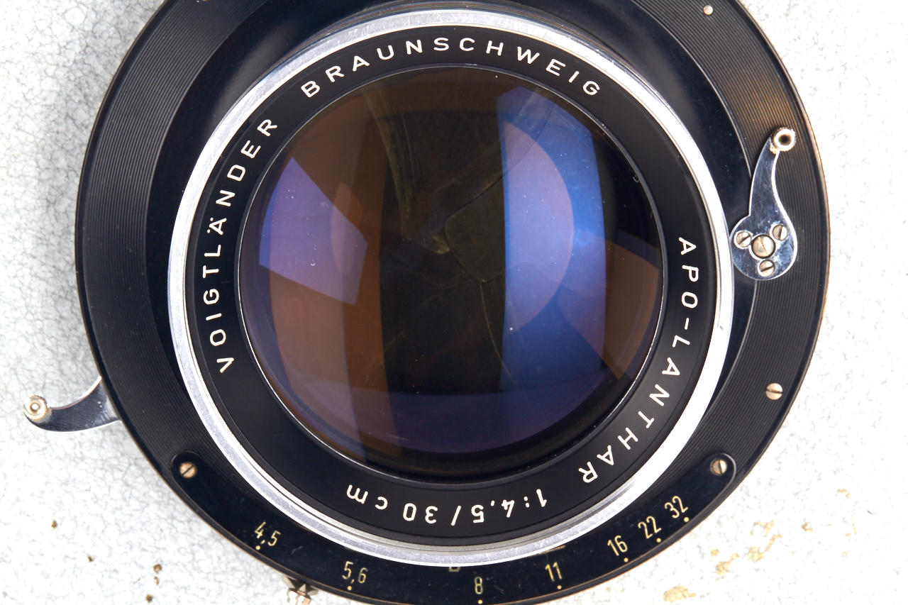 the largest of the Apo-Lanthar lenses, very rare - only around 260 of these lenses have been made between 1954-56, in excellent condition, optics with slight edge separation (otherwise clean), in working Compound shutter