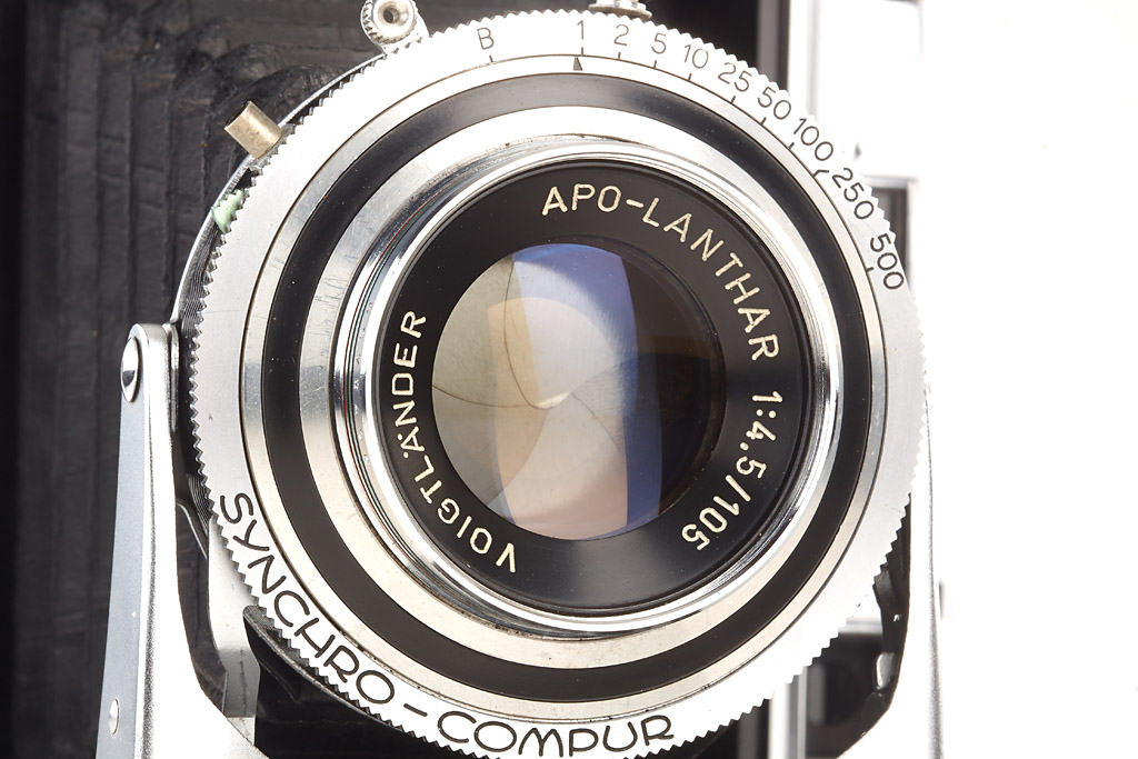 very rare camera in perfect working condition, clean Apo-Lanthar 4.5/105mm no.3670459 in good working Synchro-Compur shutter