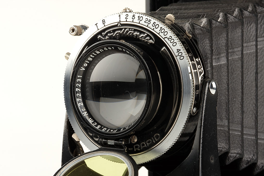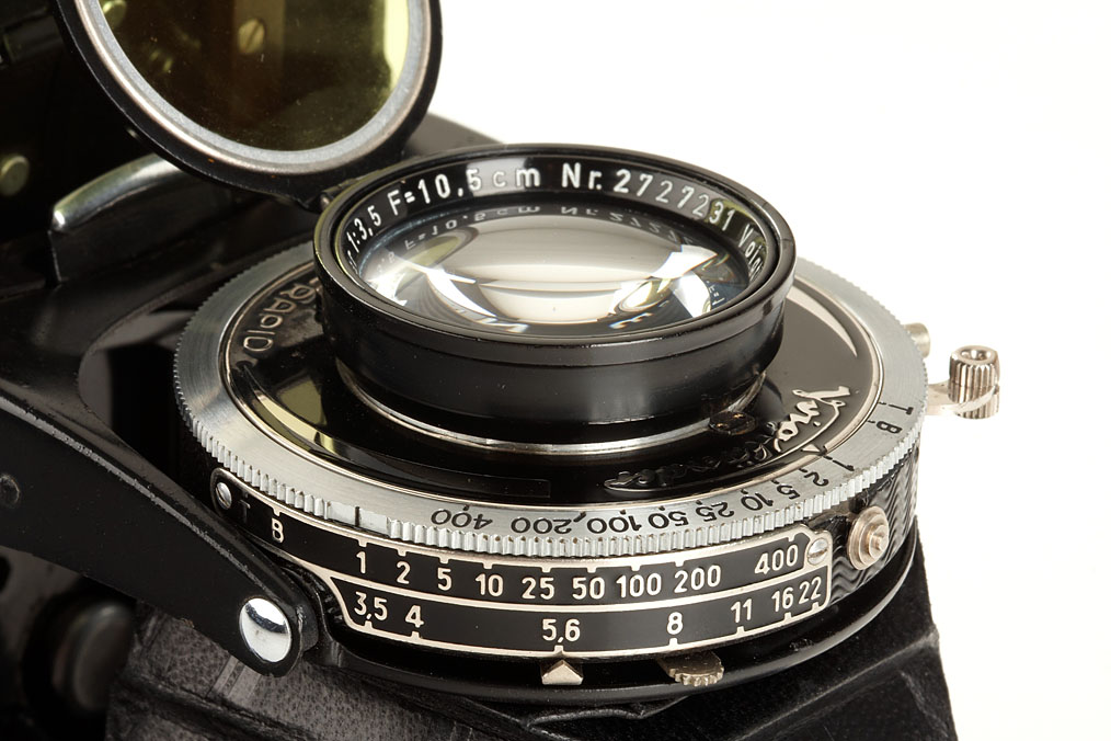 near mint 6x9cm Bessa with coupled rangefinder, with Skopar 3.5/10.5cm no.2727231, attached yellow filter, mask for 4.5x6cm, case