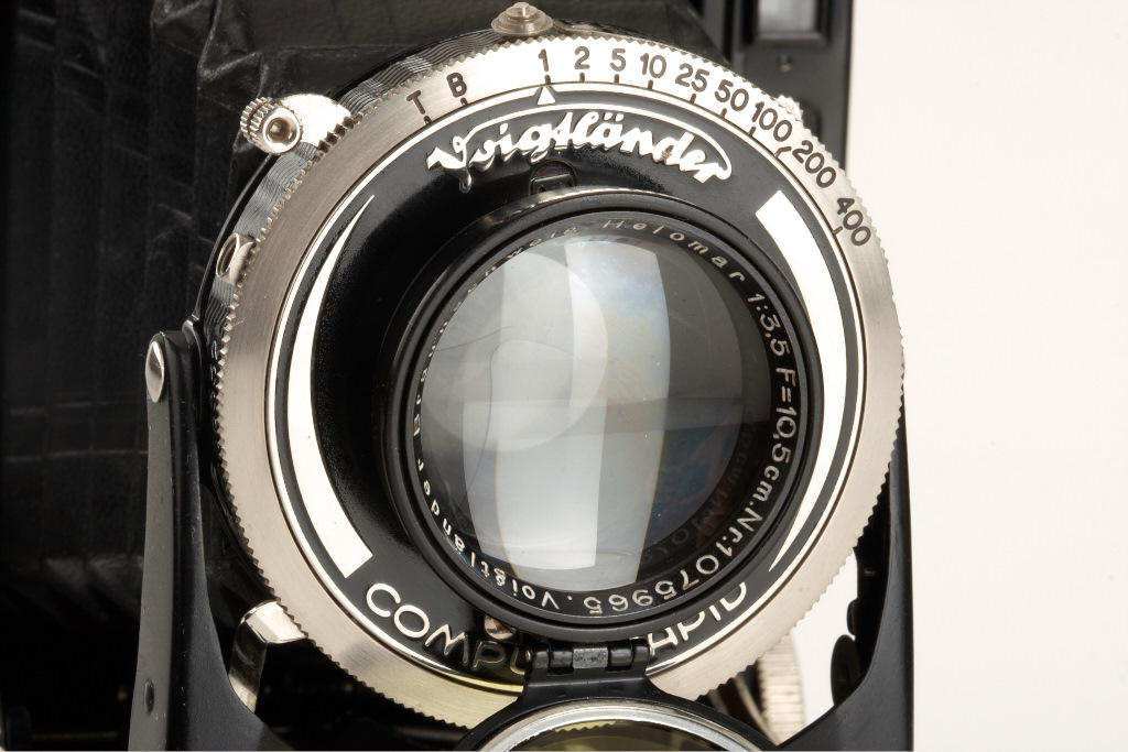 excellent 6x9cm Bessa with coupled rangefinder, with Helomar 3.5/10.5cm no.1075965 in Compur-Rapid shutter, attached yellow filter, mask for 4.5x6cm, case