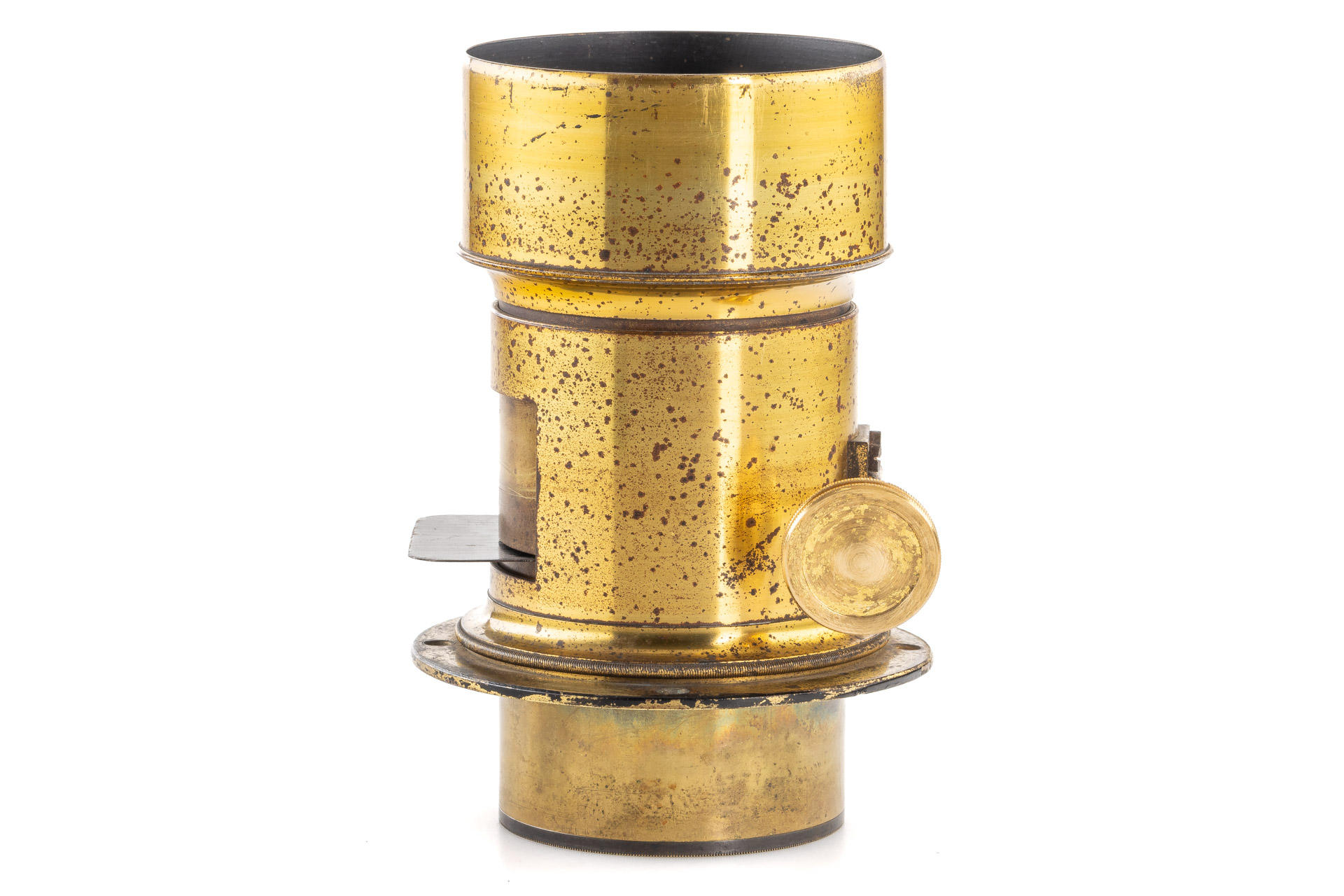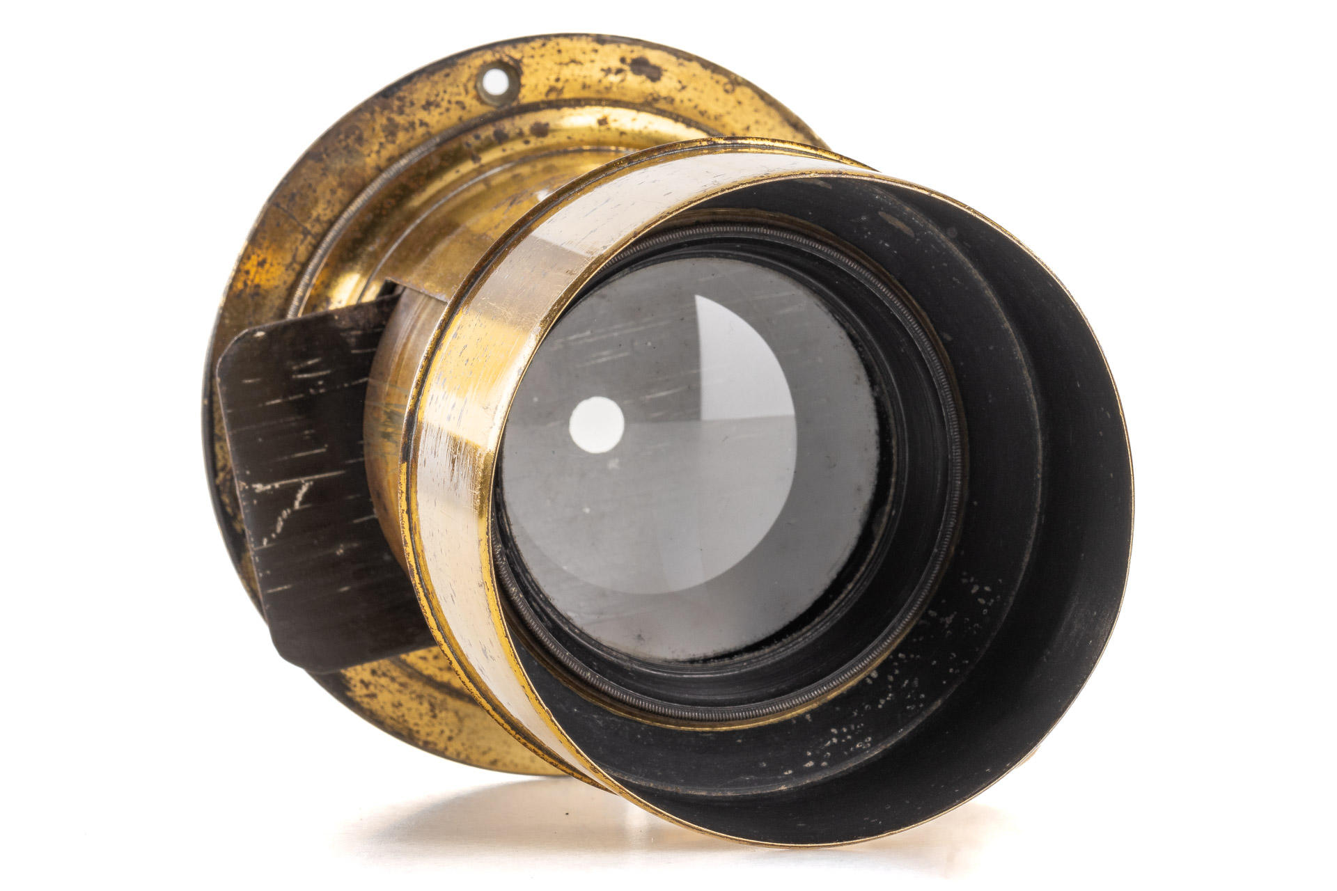 a very early, 1861 Petzval lens by Voigtländer, in very fine condition, with good optics, total height with hood 15cm, including original mounting ring
